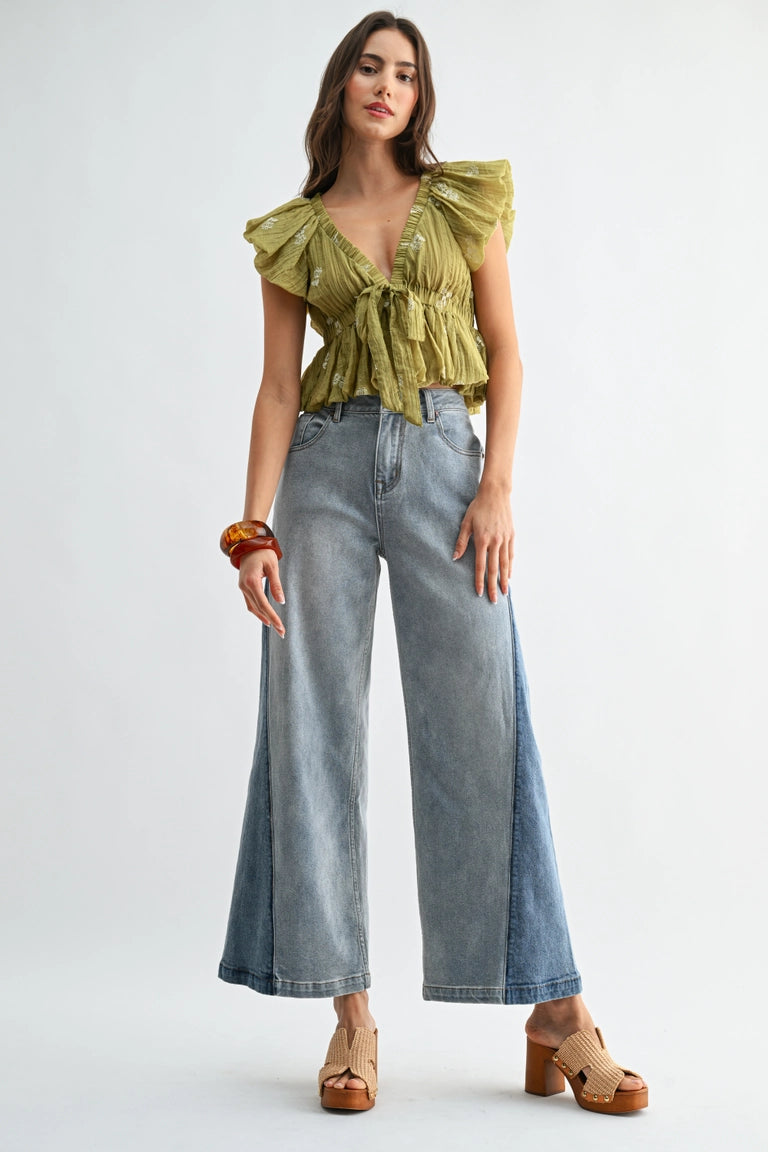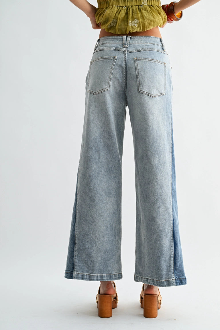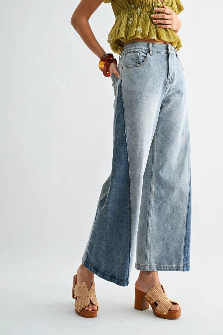 A modern denim essential designed with a high-rise waist and a relaxed wide-leg silhouette. Crafted in soft, lived-in denim with subtle panel detailing, this style offers structure with effortless ease. Flattering, versatile, and endlessly wearable—perfect paired with cropped tops, knits, or flowing blouses.