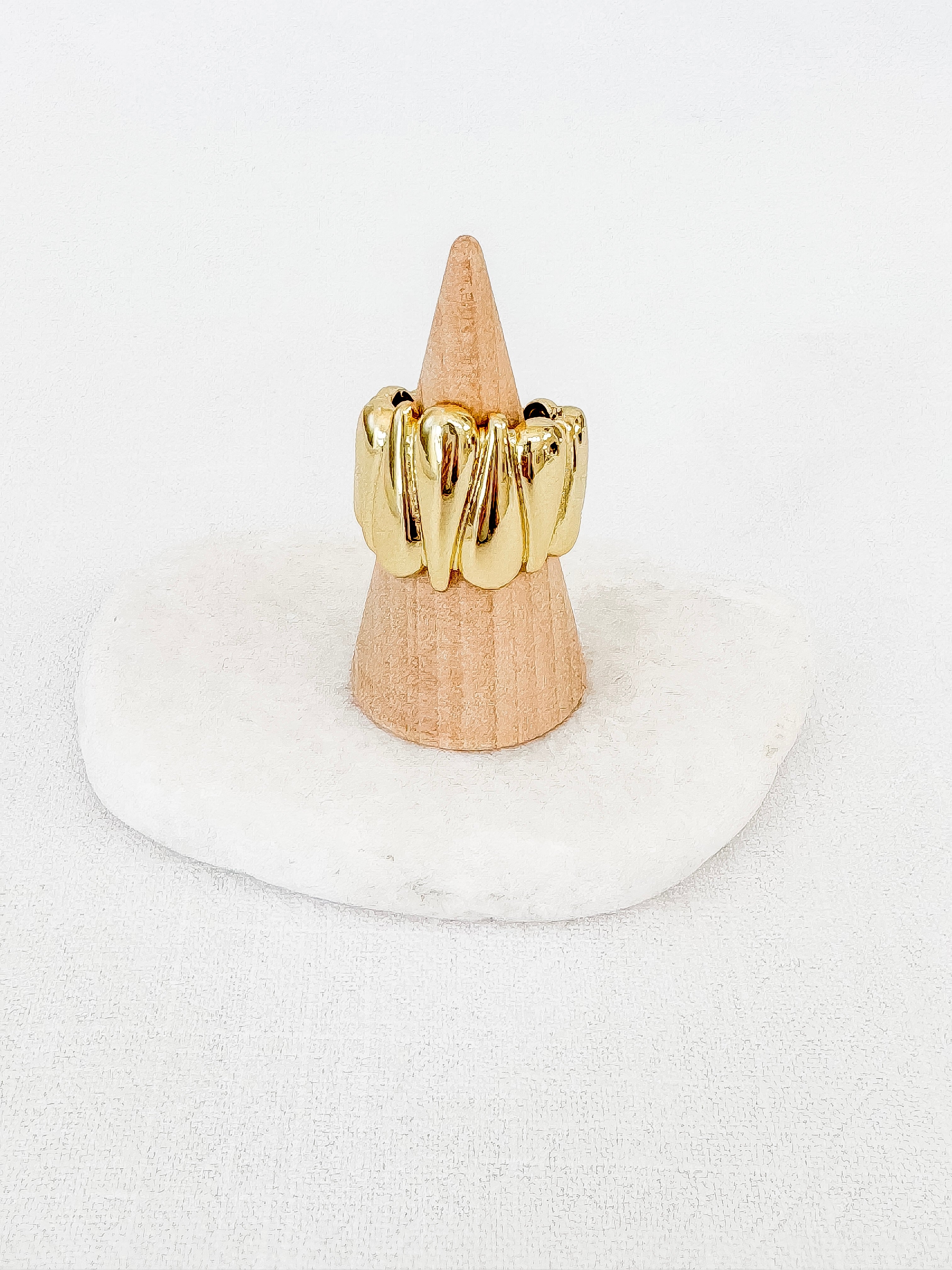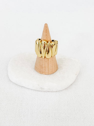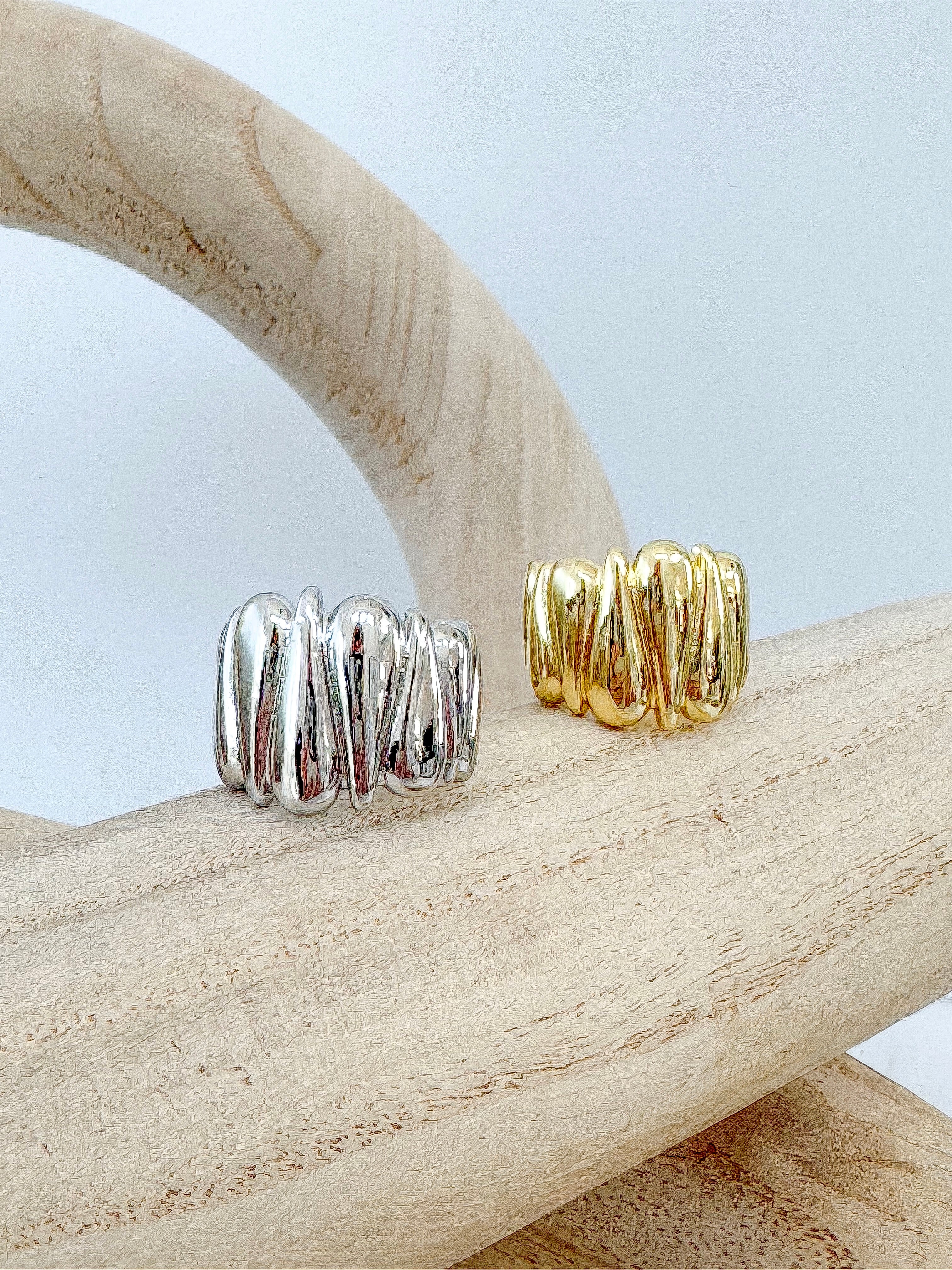 The Grecia Ring makes a bold statement with its sculptural, organic design. Gold-plated and strikingly modern, this chunky piece brings effortless sophistication to any look — powerful, timeless, and uniquely Matte.