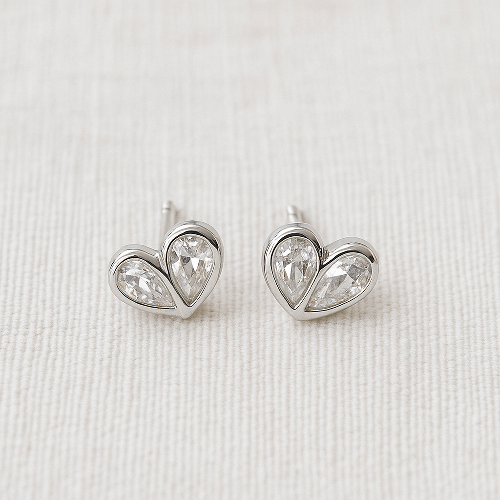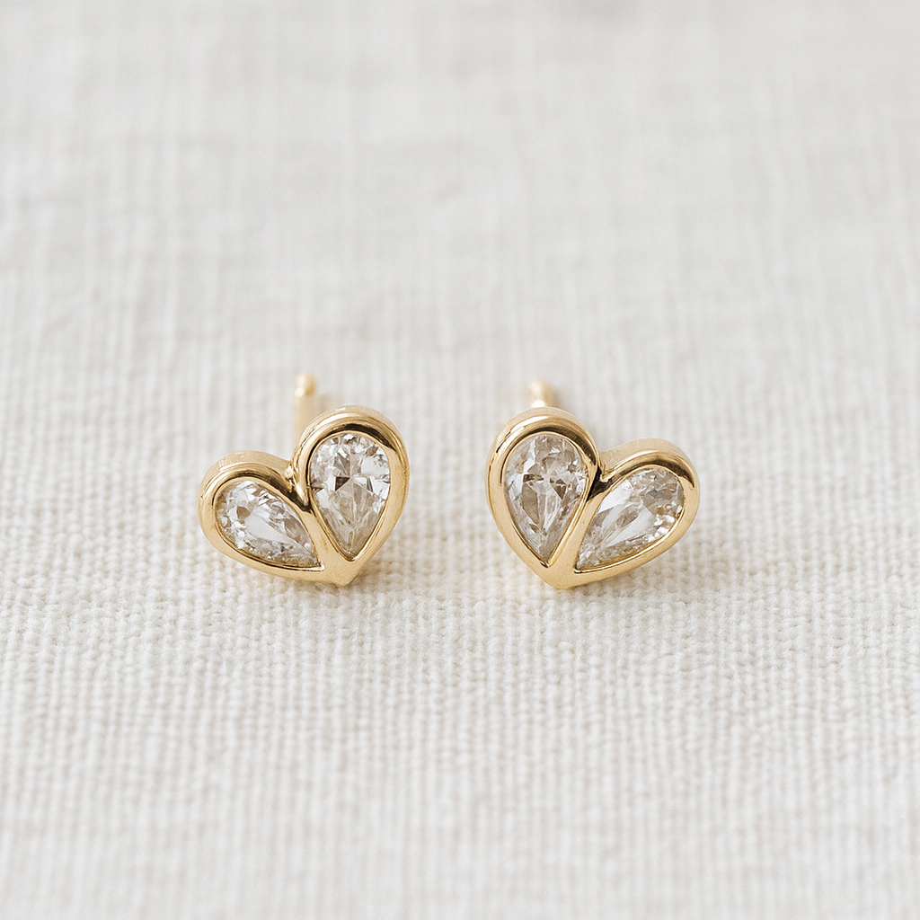 Tiny and charming — the Kuga Stud Earrings are heart-shaped studs. Hypoallergenic and nickel-free, these petite studs add a sweet, subtle touch to your everyday look.