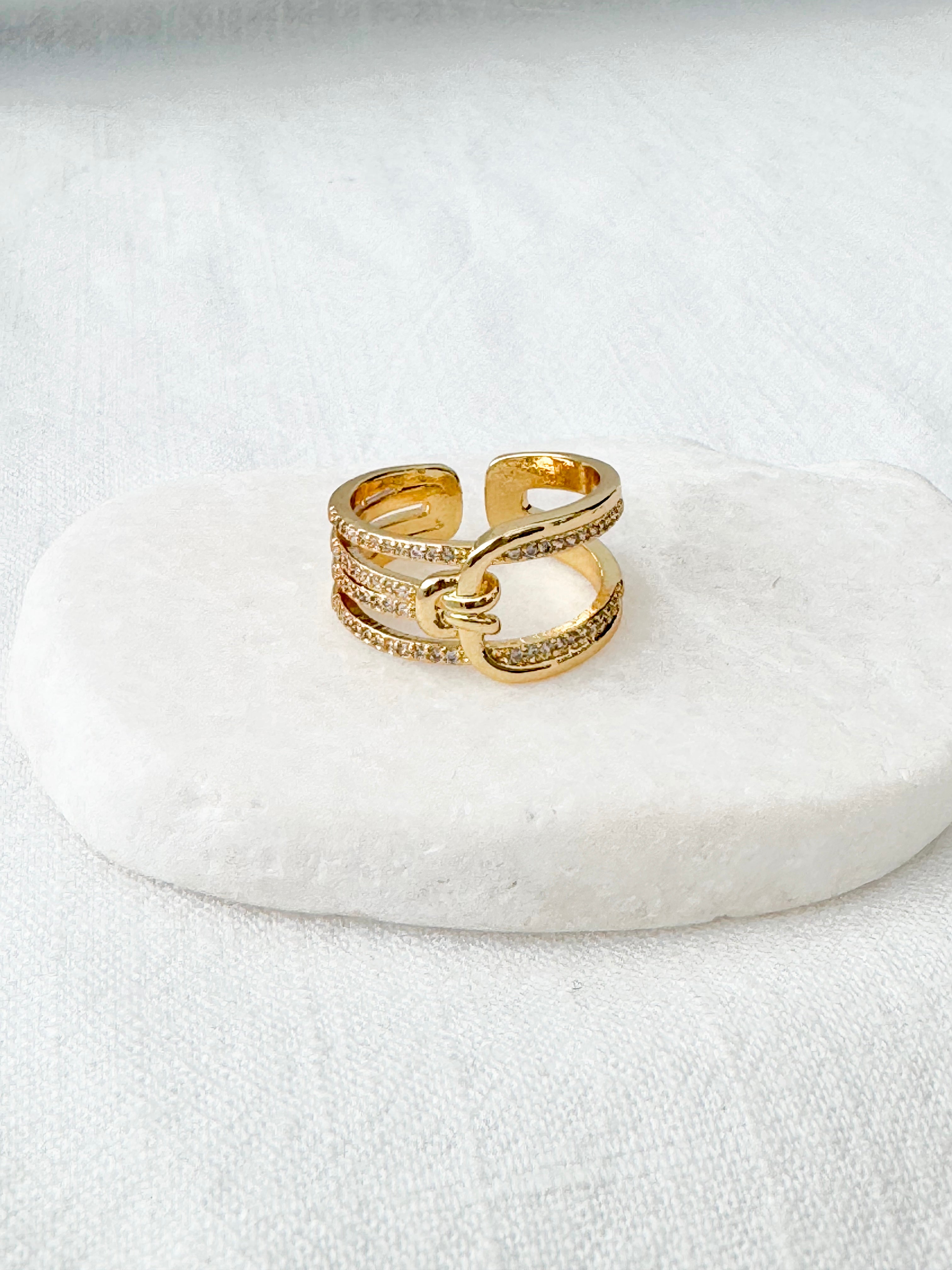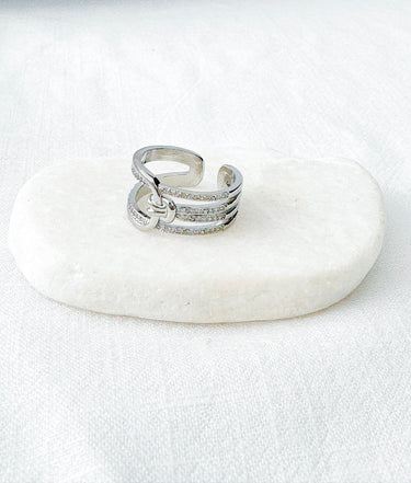 The Pompeya Ring blends modern sophistication with timeless charm. Its open-band design and delicate crystal accents add the perfect touch of sparkle — effortlessly elevating any look from day to night.
