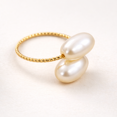 Soft, luminous, and effortlessly refined — this pearl ring brings a modern twist to a timeless classic. Featuring two delicate oval pearls set on a twisted band, it creates a balanced, sculptural look that feels both minimal and elevated.