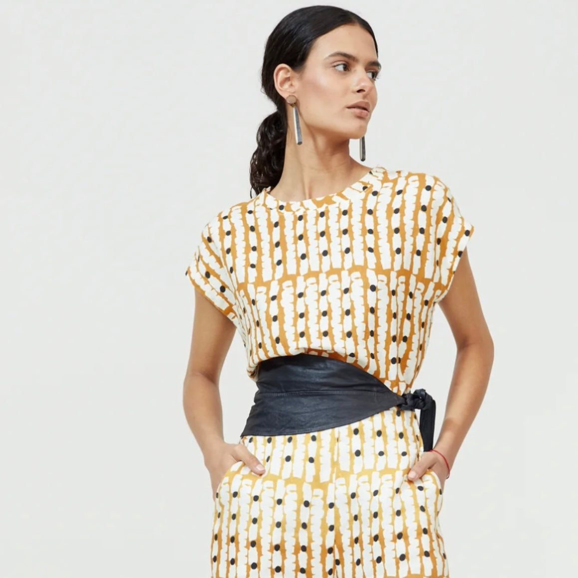 Effortless and elegant, the Amaris Blouse is crafted from 100% organic linen with a soft, pre-washed finish. Its relaxed silhouette and modern print make it the perfect statement piece for every season.