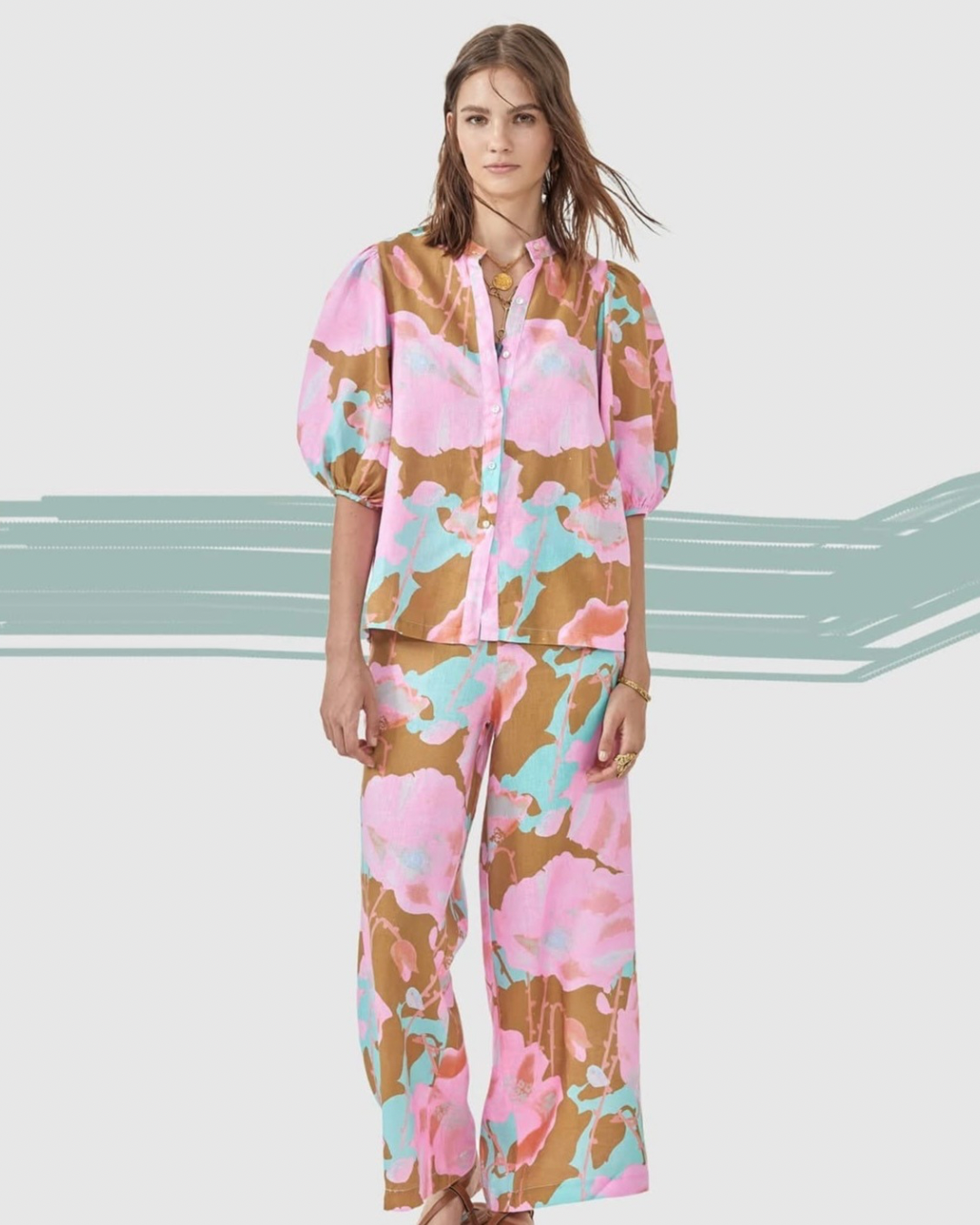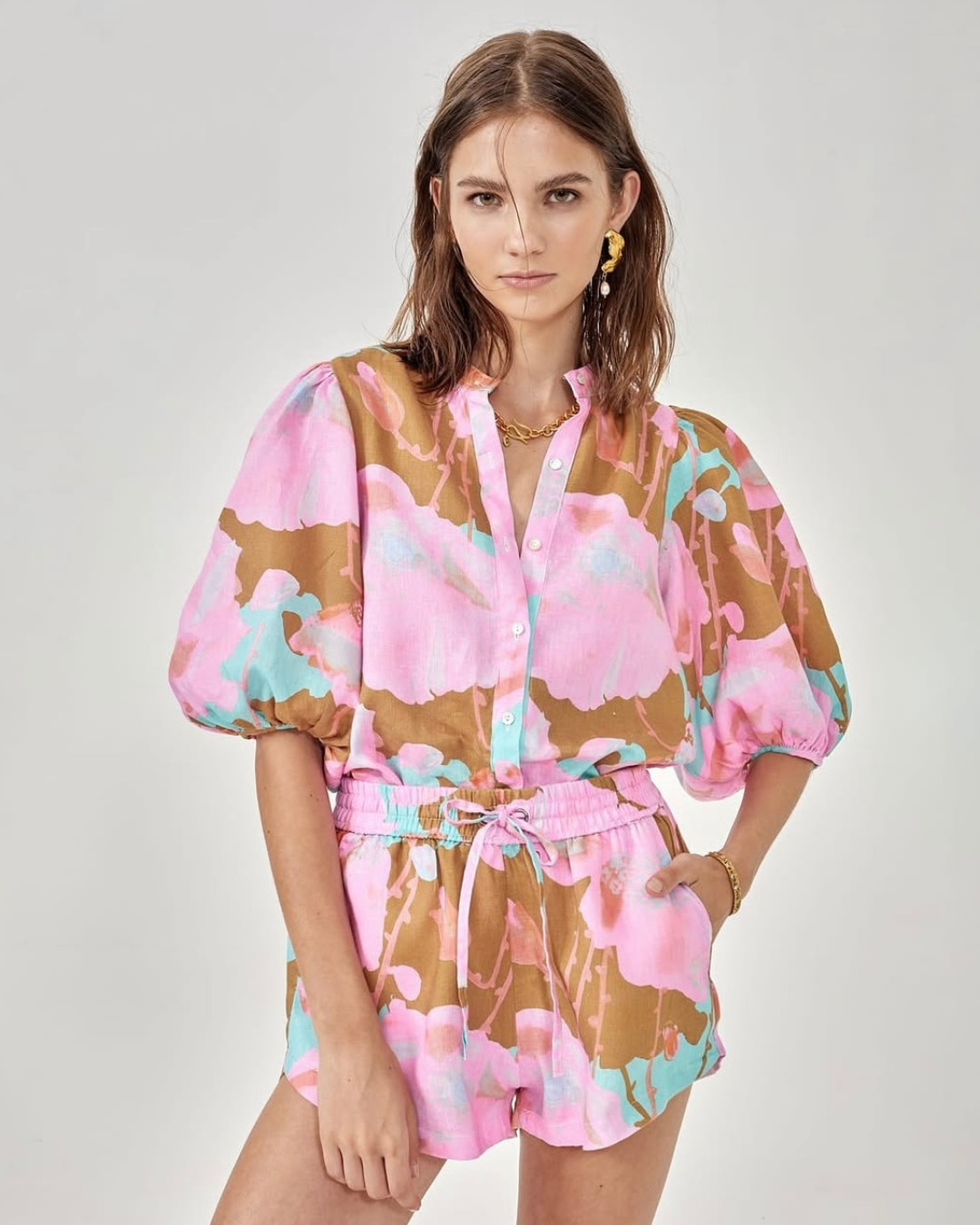 Playful, feminine, and effortlessly chic — the Bubble Shirt is a statement piece that brightens any look. With its soft puff sleeves and colorful print, it’s perfect for resort days or dressed-up city moments.