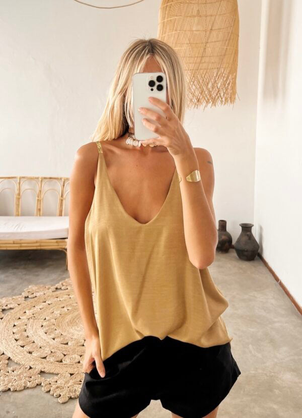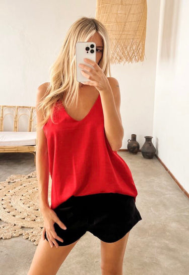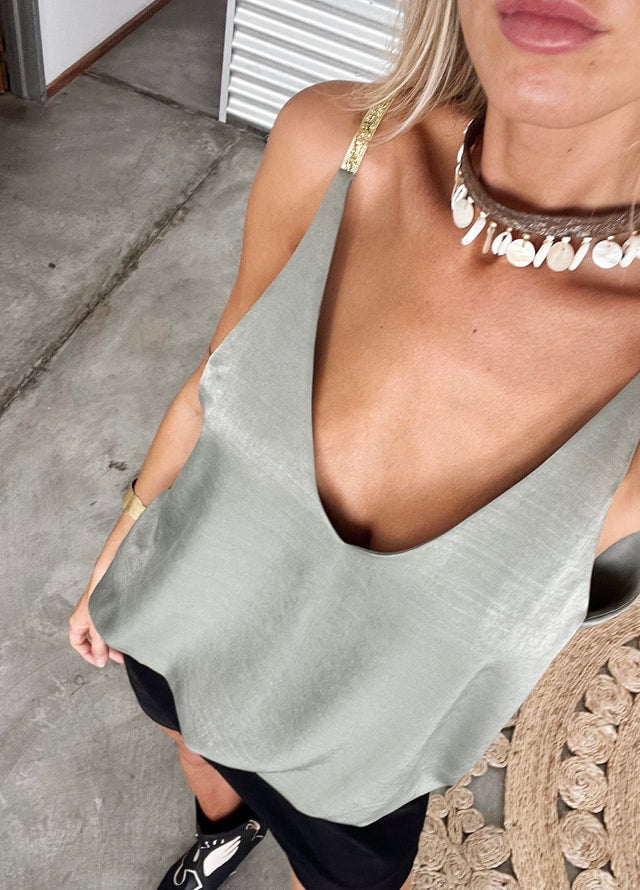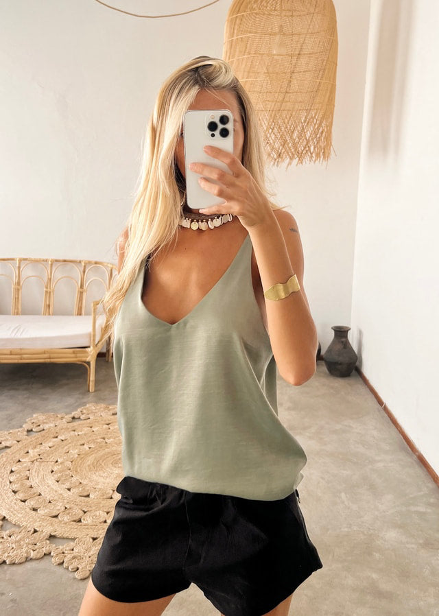 Simple, elegant, and endlessly versatile — the Terra Top brings soft silk texture and effortless drape to every look. Available in multiple colors, this delicate tank top is your new go-to.