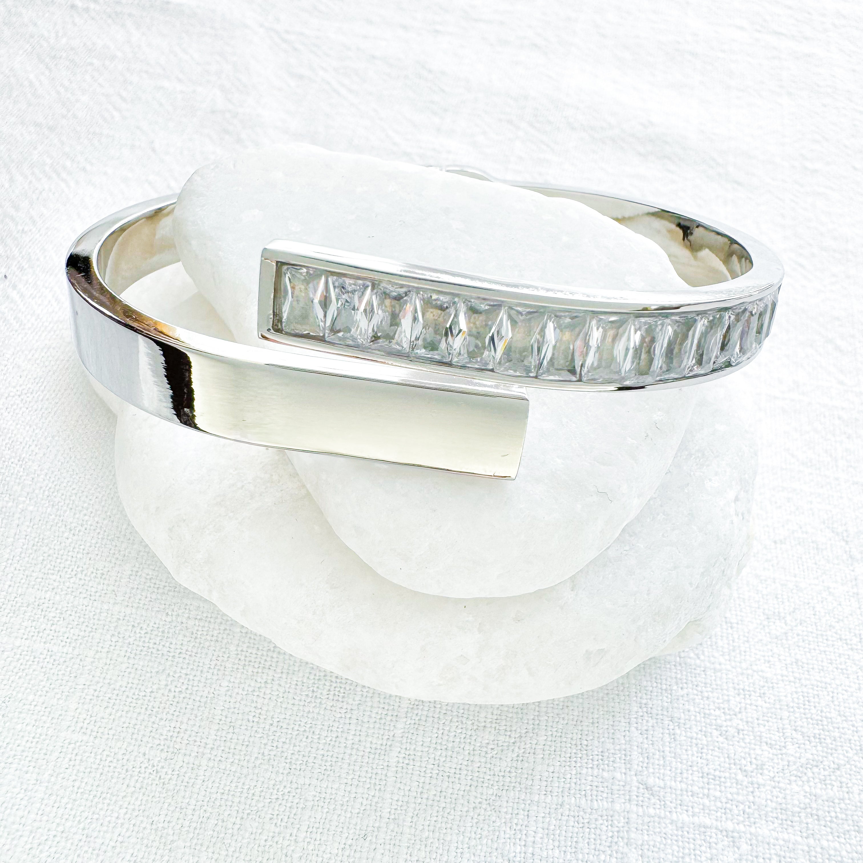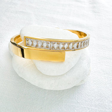 Radiant and refined, the Delfi Bangle Bracelet captures timeless sparkle with a sleek geometric touch. Its gold-plated finish and baguette-cut accents bring just the right balance of shine for day or night.