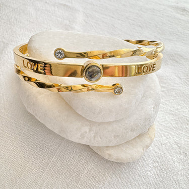 A timeless statement of elegance, the Love Bangle Bracelet shines in gold with a sleek finish and delicate crystal details. Perfect for layering or wearing solo, it adds effortless sophistication to your look.