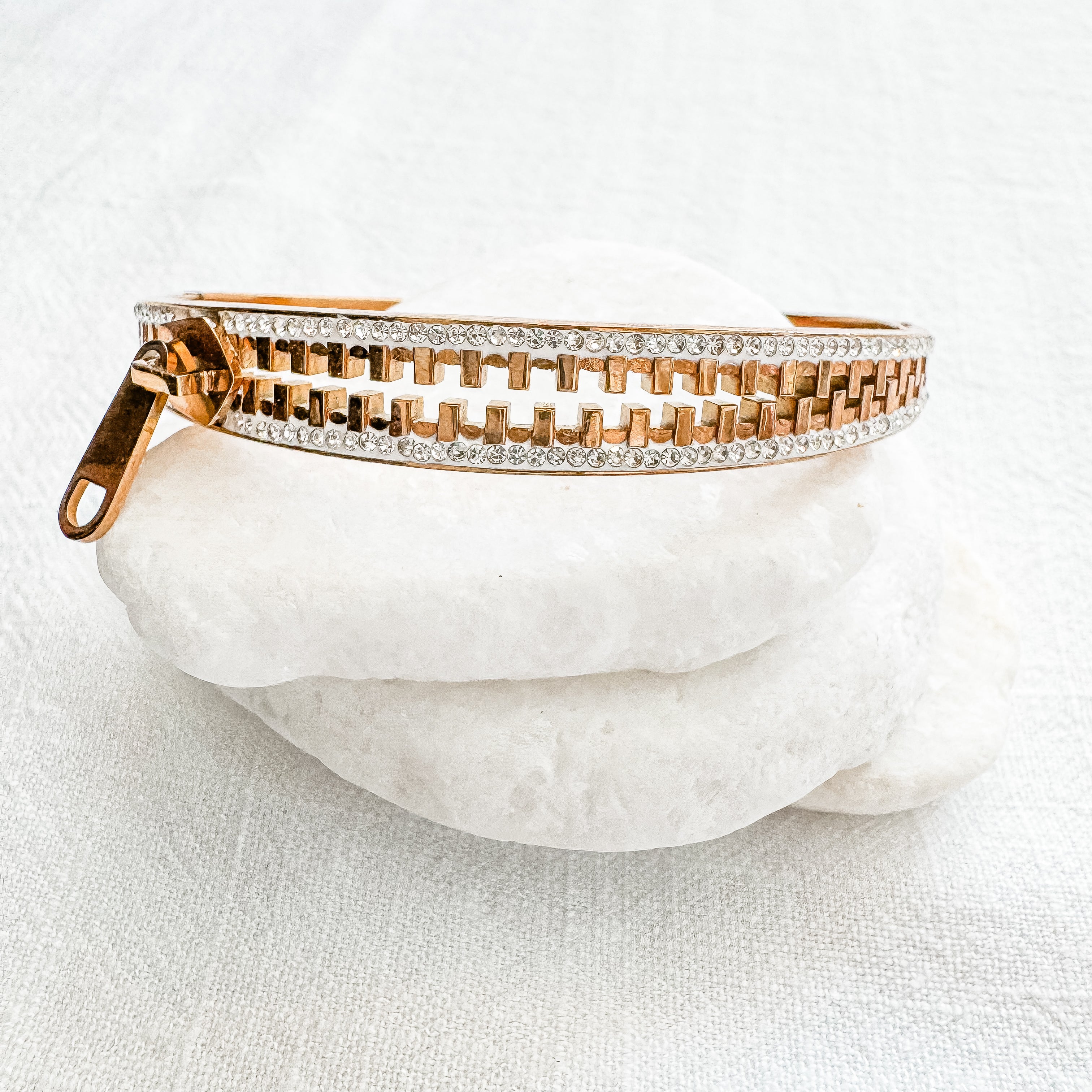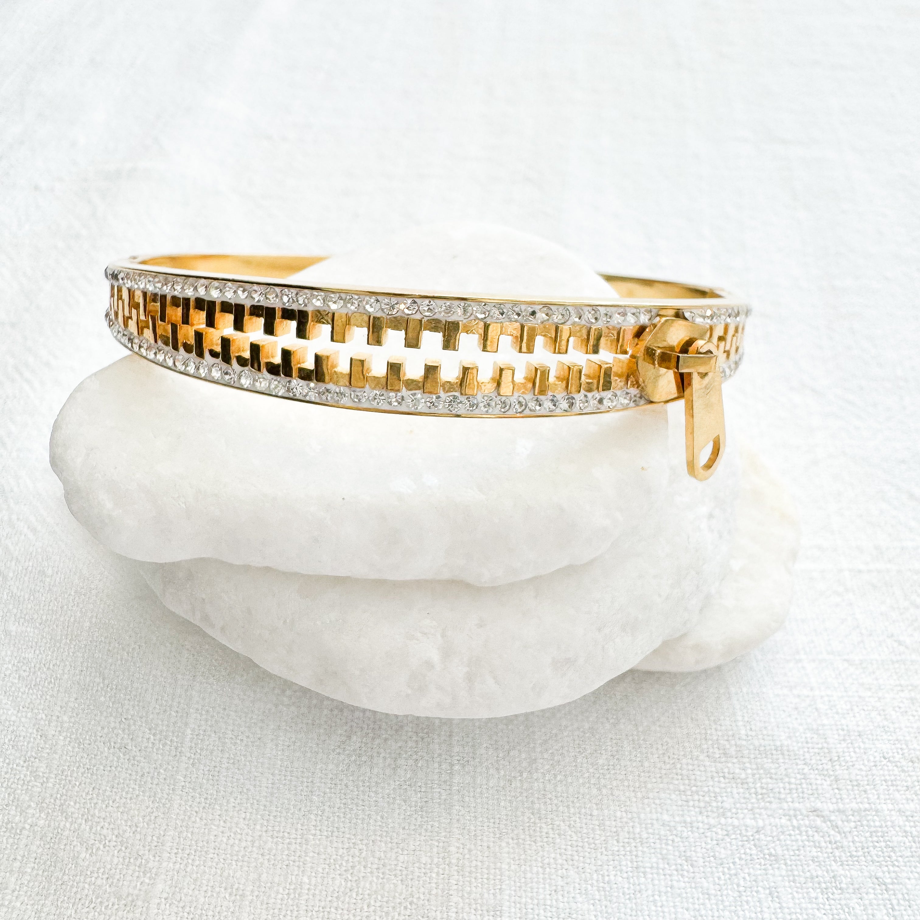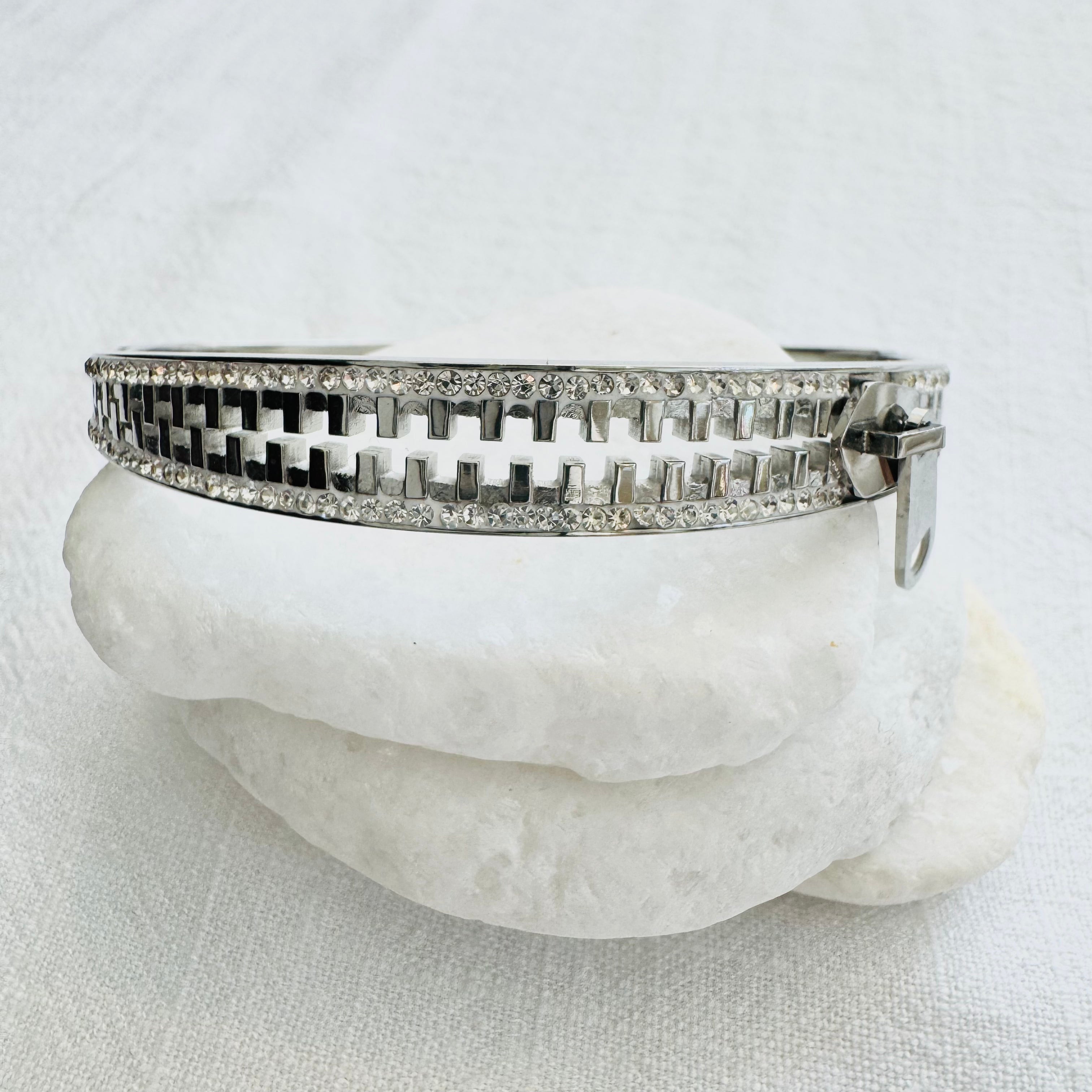Bold yet refined — the Ninna Bangle Bracelet combines geometric texture with radiant shine. Crafted in stainless steel and finished with baguette-cut accents, it’s the perfect statement piece for your wrist stack or a polished solo look.