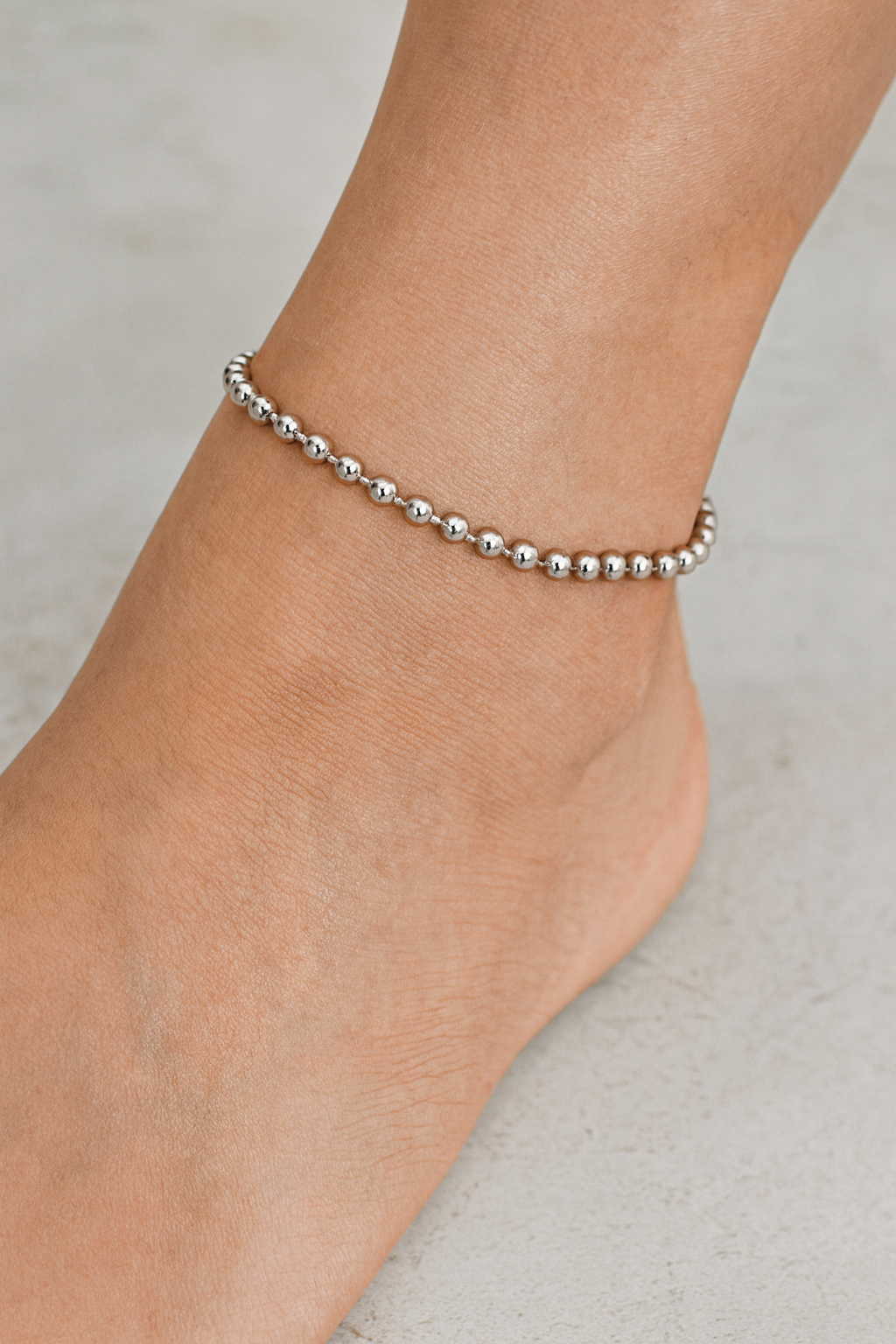 Effortlessly chic, the Chabell Anklet brings a touch of minimalist elegance to your everyday style. Crafted with silver-plated round beads and an adjustable chain, it’s perfect for layering or wearing solo for a subtle statement that shines with ease.