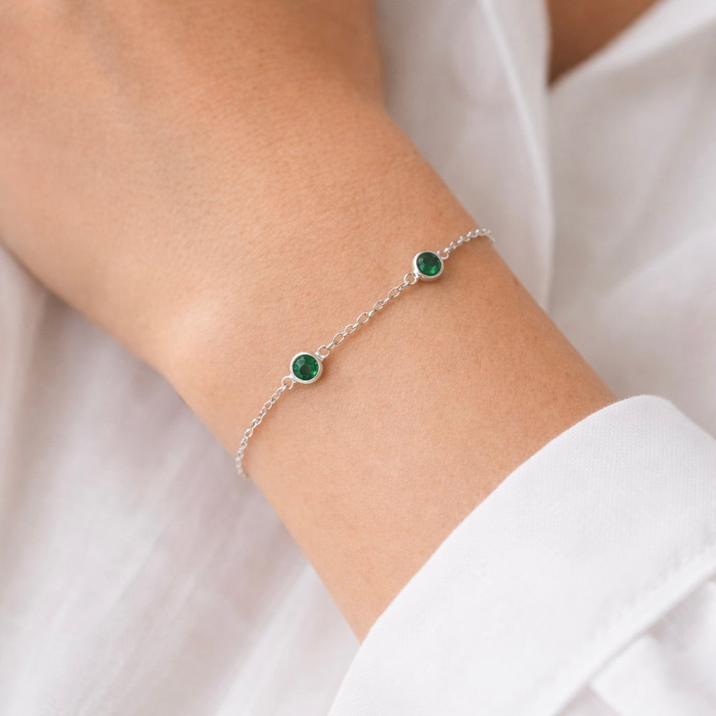 Delicate with a hint of glow. This fine silver chain bracelet features rich emerald-green stones for a subtle pop of color and effortless elegance. Wear it solo for a clean, minimal moment or stack it up for that perfectly layered, everyday luxe look.
