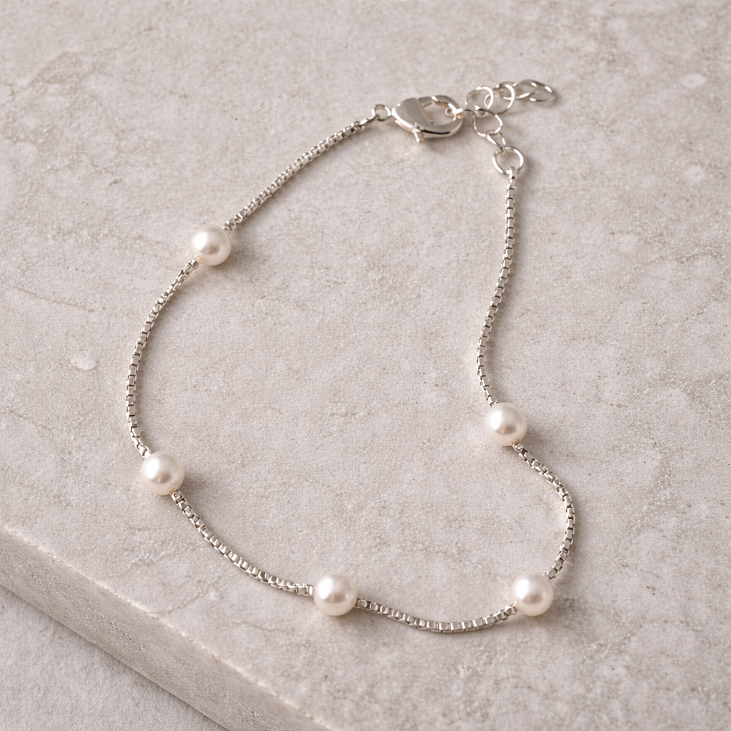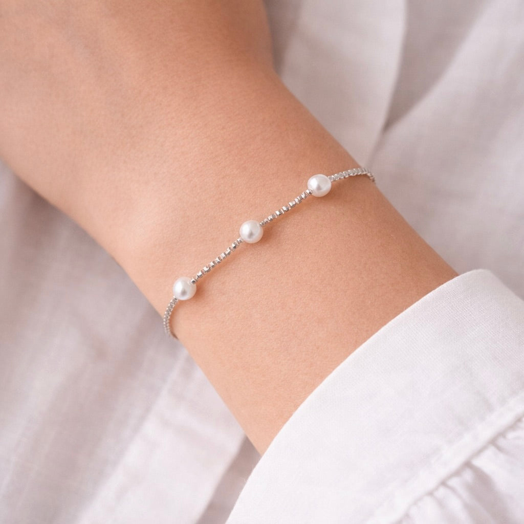 Classic pearls, made effortlessly modern. This delicate silver chain bracelet is dotted with luminous pearls for a soft, polished glow that feels timeless yet fresh. Perfect for everyday elegance, dreamy layering, and those clean, romantic finishing touches.