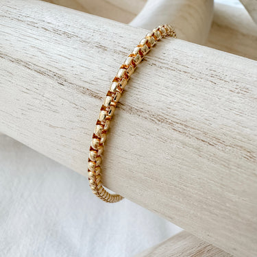 Chic and versatile, the Wynnie Bracelet brings subtle shine to your everyday look. Its gold-plated box chain design is delicate yet modern, making it perfect to wear solo or layered with other favorites. A timeless piece you’ll reach for again and again.