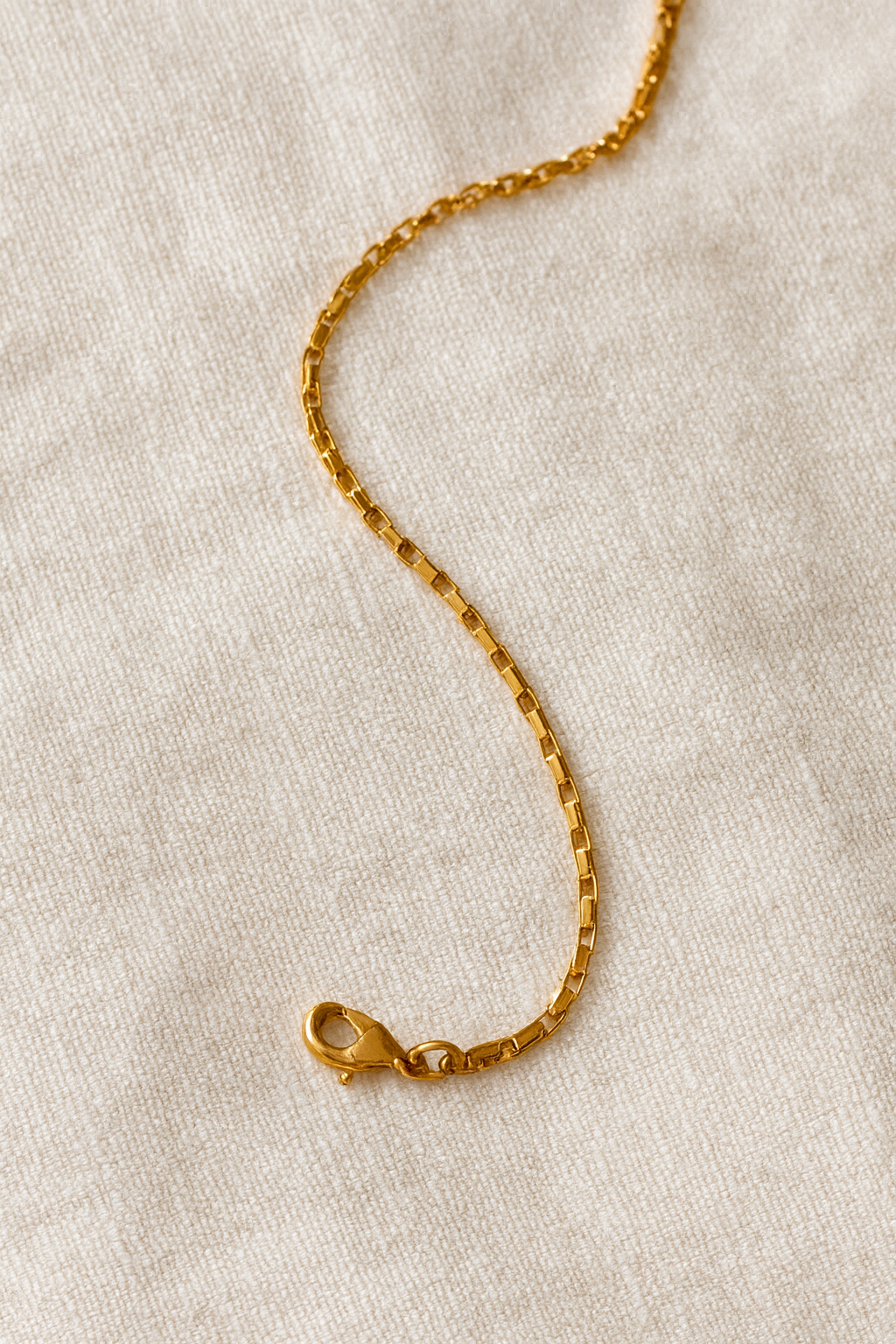 A refined essential. The Zen Bracelet features a sleek gold-plated box chain with a polished finish — minimal, timeless, and perfect for everyday layering.