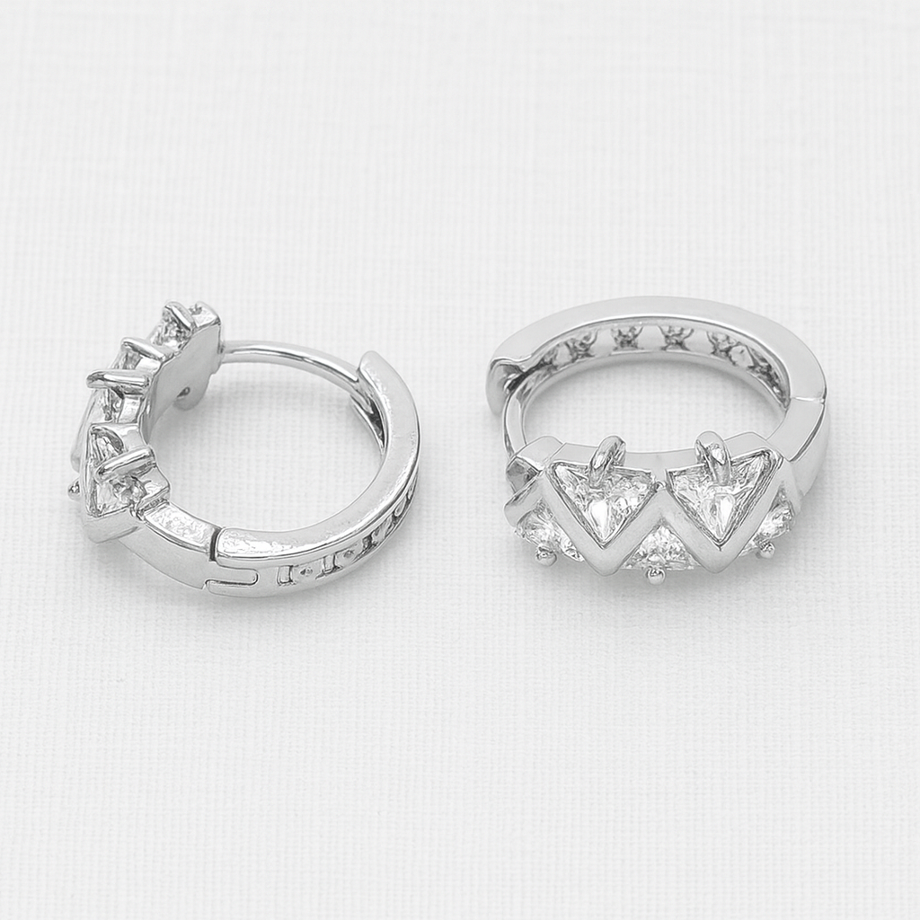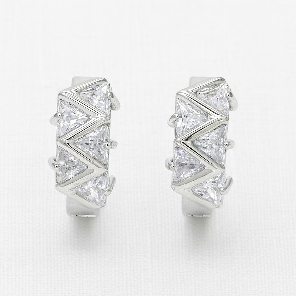Reims Huggie Earrings feature a geometric zigzag design set with faceted stones.