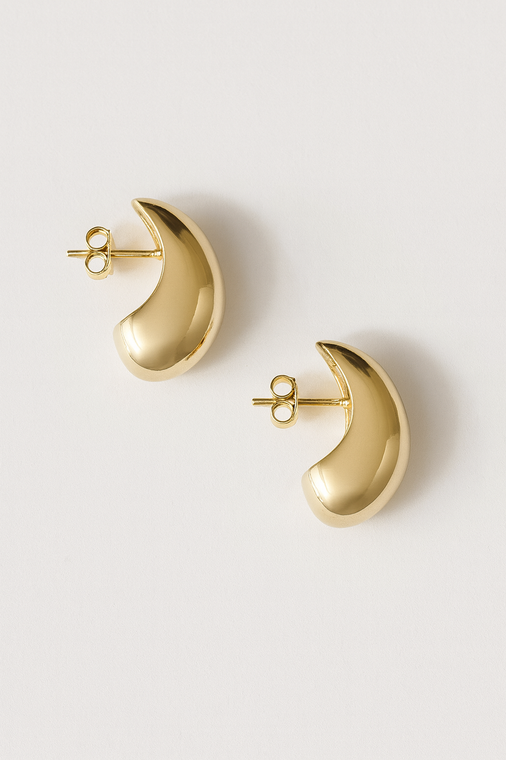 Sculptural and timeless — these gold-plated teardrop earrings bring soft volume and mirror-like shine to any look. Lightweight yet bold, they’re the perfect everyday statement piece.