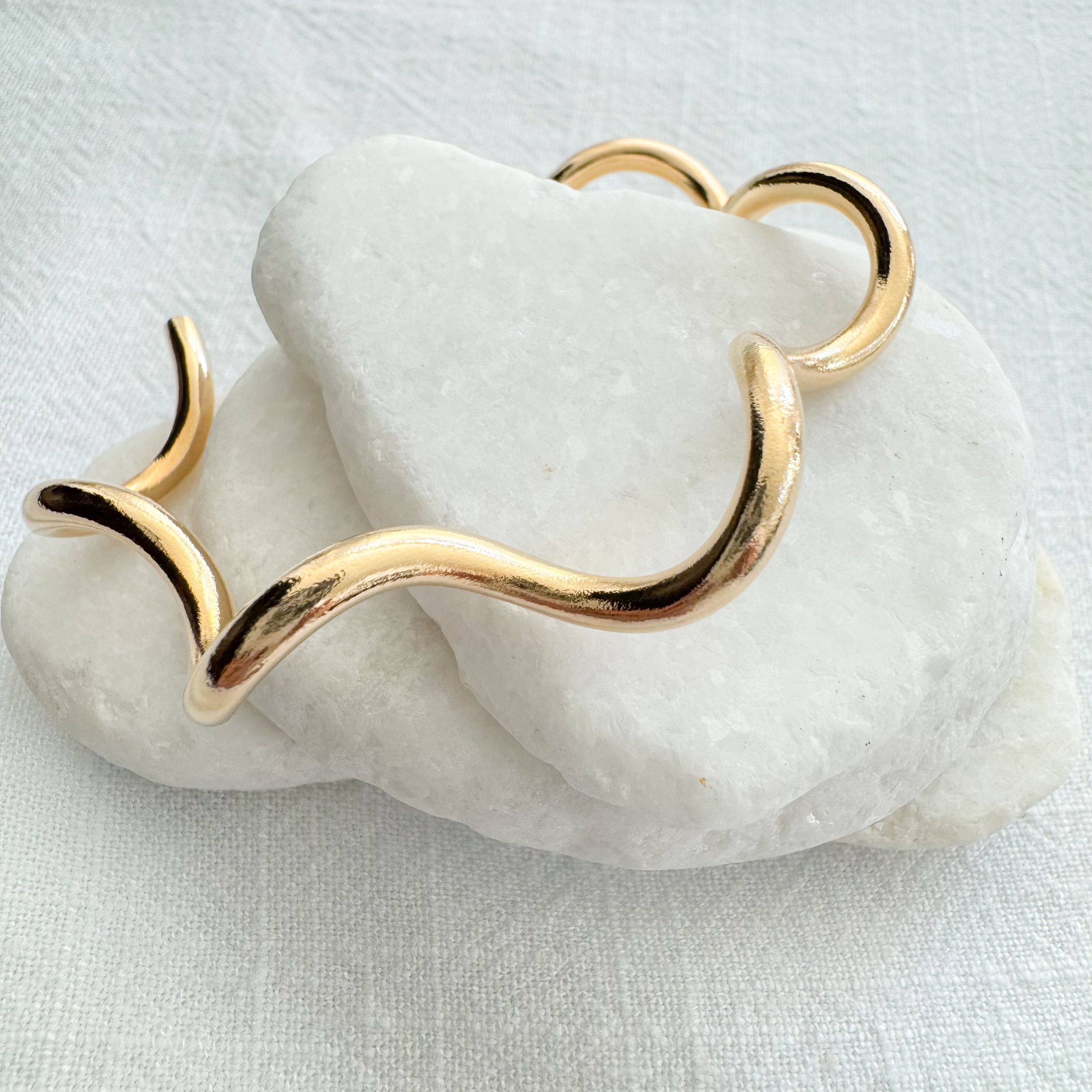 Make a statement with the Chebar Cuff Bracelet — a sculptural design in silver and gold tones that adds modern edge and effortless elegance to any look.