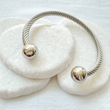 The Westy Cuff Bracelet brings a modern twist to classic minimalism. Its sleek rope-style texture and polished ball ends create a timeless piece that adds effortless shine to any look.