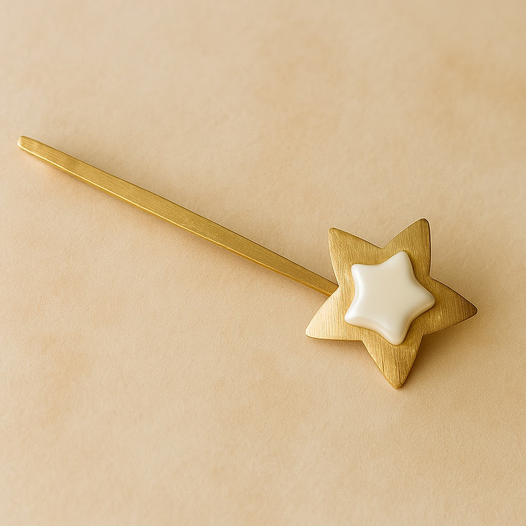 Add a celestial glow to your look with the Oksana Hair Clip, featuring charming gold star accents. Perfect for brightening your hairstyle while keeping it effortlessly in place — a little piece of stardust for every day.