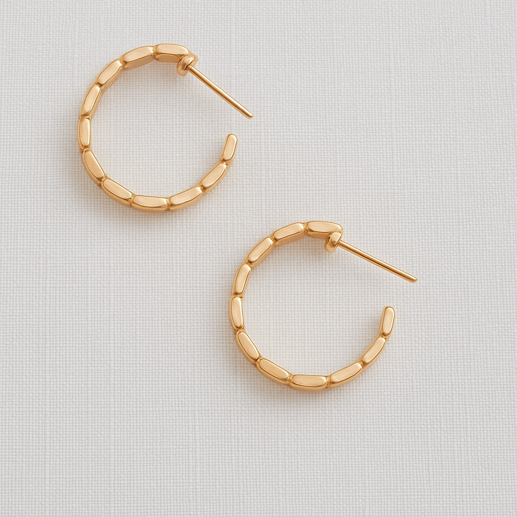 Sleek and modern — these gold-plated hoops feature a subtle linked design for effortless edge. Lightweight, polished, and perfect for everyday shine.