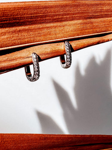 Shine with subtle sparkle — the Bellina Silver Huggies bring timeless elegance with pavé crystals designed for everyday chic.
