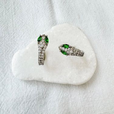 Striking yet refined — the Bologna Huggie Earrings feature emerald-green crystal eyes and pavé sparkle for a bold, snake-inspired silhouette. Hypoallergenic and nickel-free, made to turn heads.