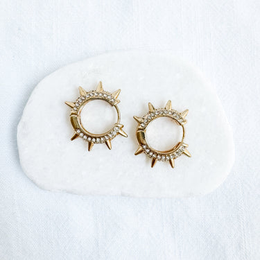 Bold yet chic — spiked huggies with shimmering pavé crystals for a statement look that elevates any outfit.
