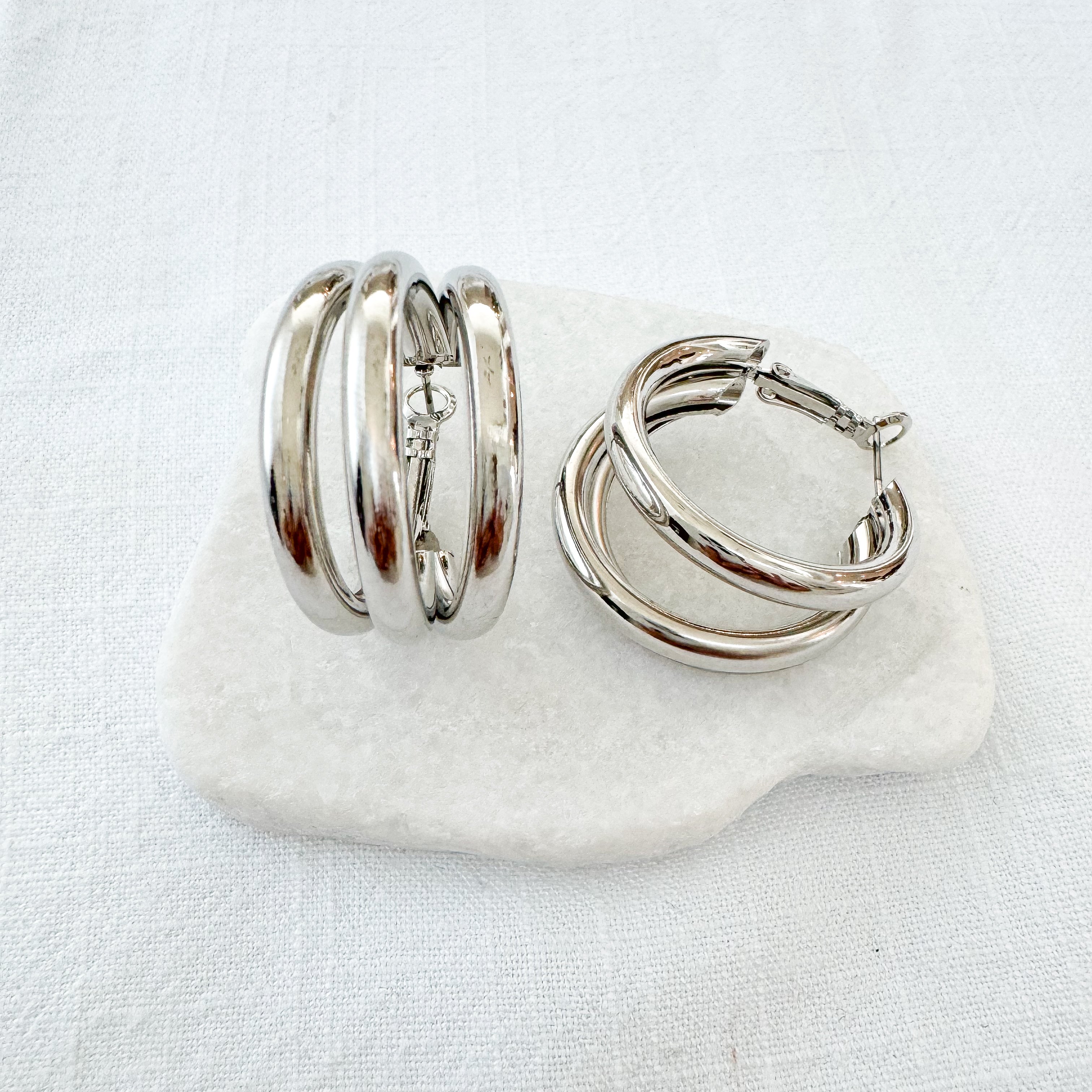 Triple the shine, triple the style. These gold-plated triple hoop earrings bring a bold yet versatile touch — hypoallergenic, nickel-free, and designed to elevate any look.