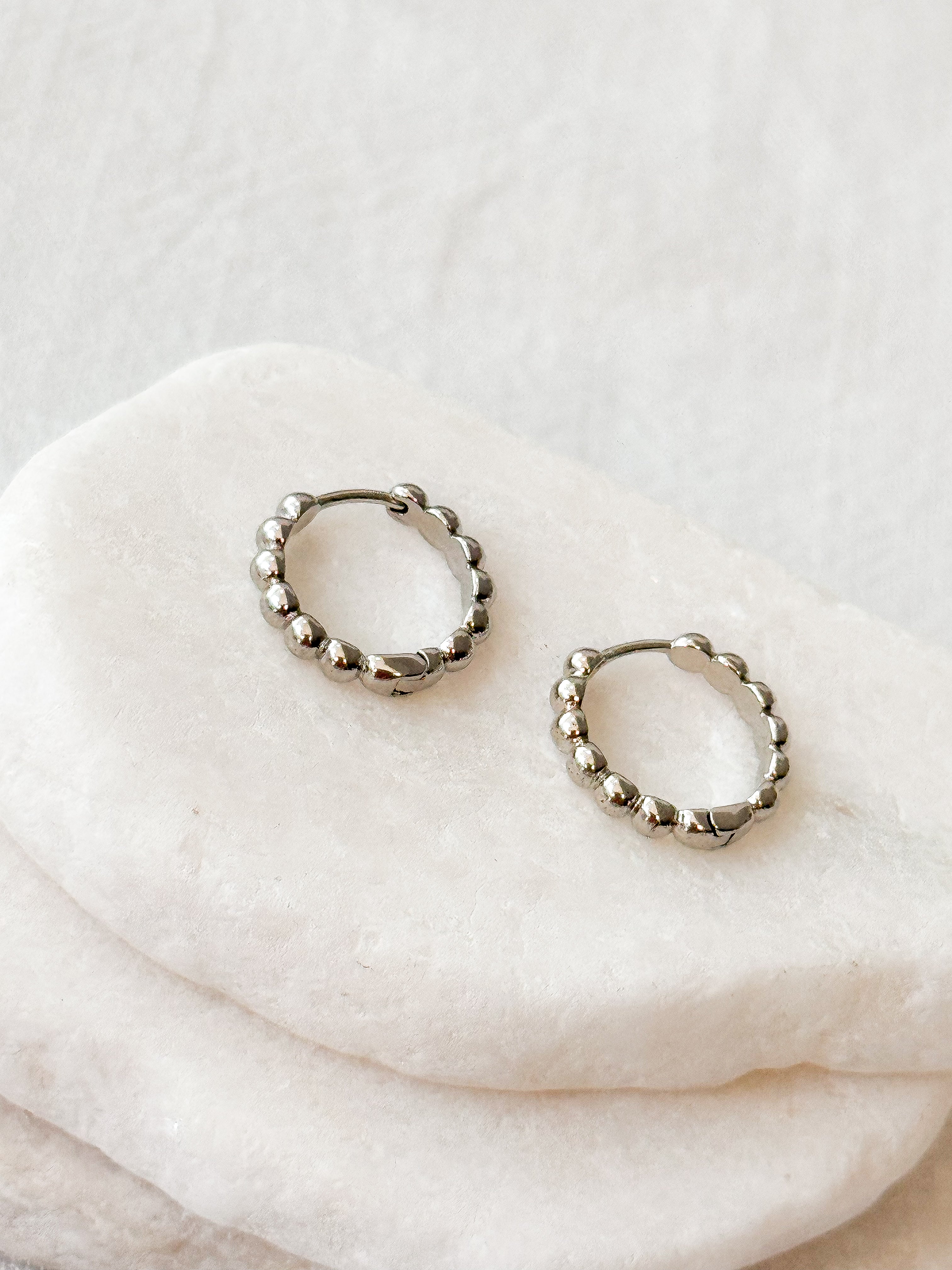 Tiny in size, big on style. These Francesca mini huggies offer a sleek silver-plated finish that hugs your lobe with elegance and ease. Hypoallergenic & nickel-free — perfect for layering or letting them shine solo. Elevate every moment with subtleness and light.