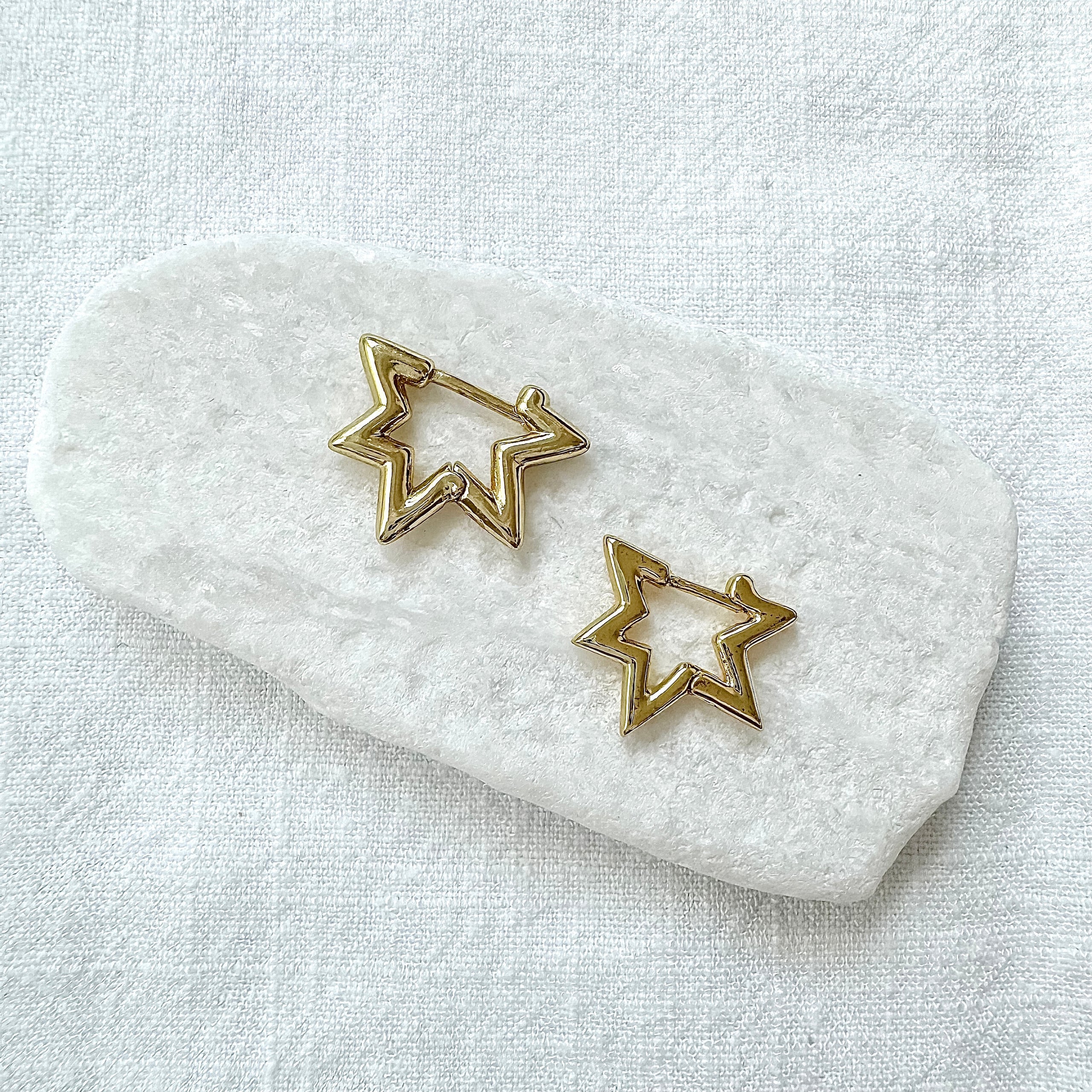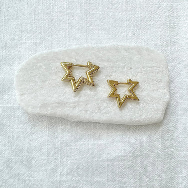 Shine bright — the Gaziantep Huggie Earrings feature a bold star silhouette in polished gold plating. Nickel-free, lightweight, and made for standout style.