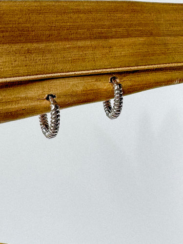 Add a modern twist to your ear stack — the Sabina Silver Huggies feature a textured spiral design that catches the light with every move.