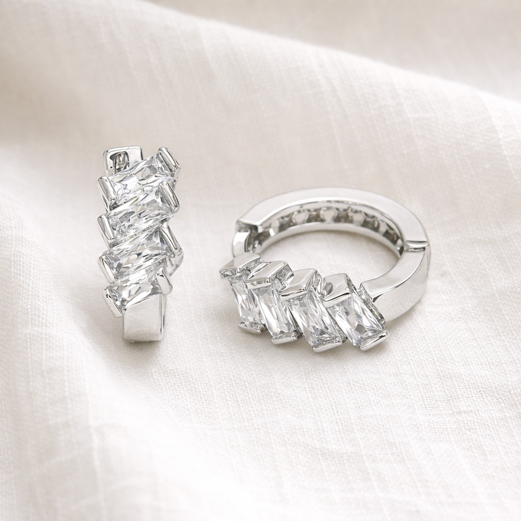 Refined with a touch of sparkle, the Satori Huggie Earrings feature a polished huggie accented with clear crystal stones for subtle brilliance. Designed to sit close to the ear, they balance everyday elegance with a statement finish.