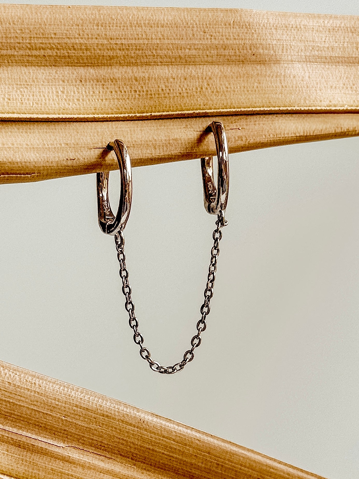 Light, sleek and stylish—with movement. The Wagu Huggie Earrings feature slim huggies with a chain drop. Nickel-free and hypoallergenic, they lend subtle edge and flutter to any outfit.