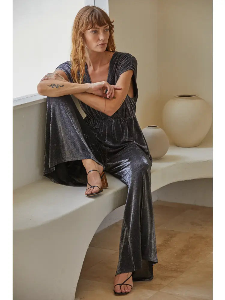 The Fares Jumpsuit captures understated elegance with its sleek, shimmering finish and fluid movement. Designed with a soft stretch fabric that catches the light beautifully, it enhances your silhouette with a comfortable fit and wide-leg design. Perfect for dinner parties, evening events, and resort getaways.