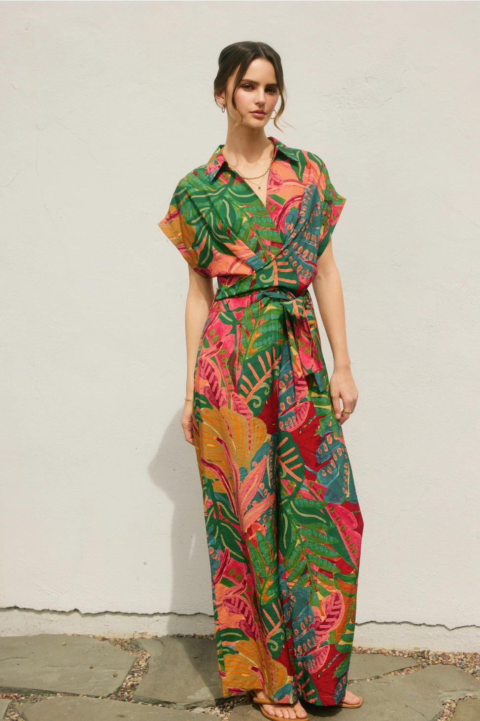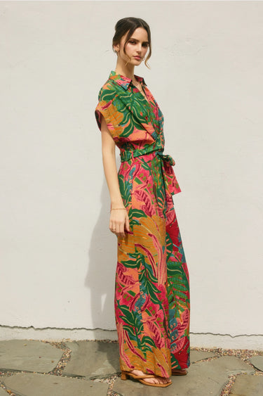Meet your instant mood-lifter. This tropical print maxi shirt dress blends bold color with effortless polish, featuring a relaxed button-front silhouette and a matching waist tie to define your shape in the most flattering way. Light, breezy, and made for sunshine—this is the one you’ll reach for on repeat, from brunch dates to vacation nights.