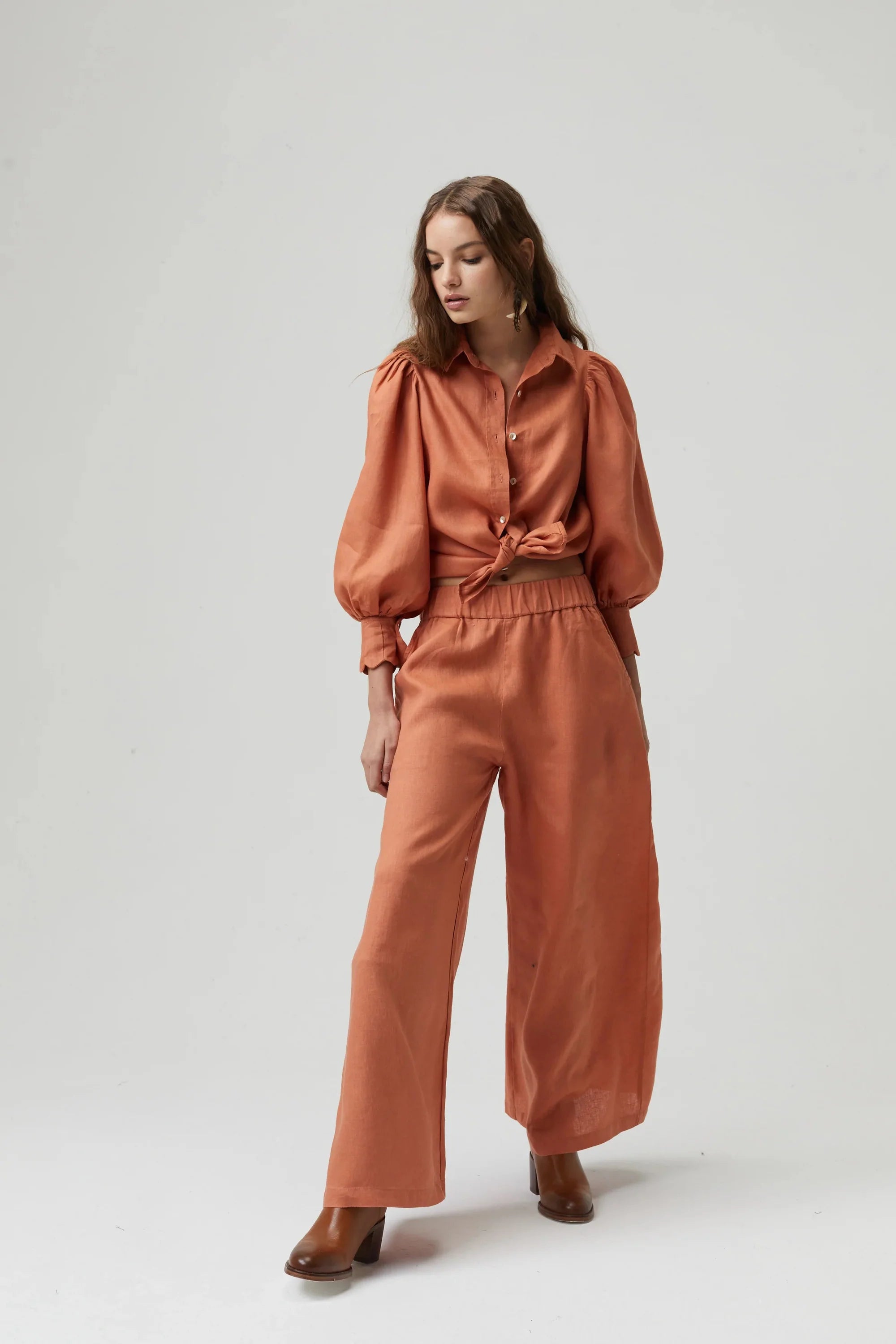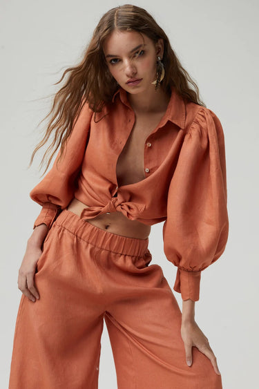 The feminine Camille Shirt is made with our beloved 100% organic linen. Featuring voluminous sleeves and femenine scalloped cuffs, it is a perfectly flattering piece for all year round.