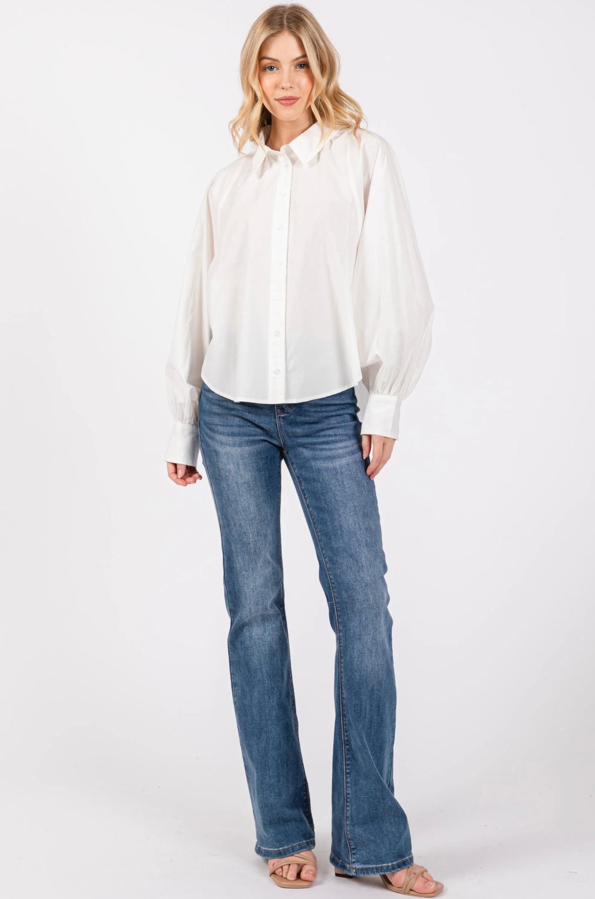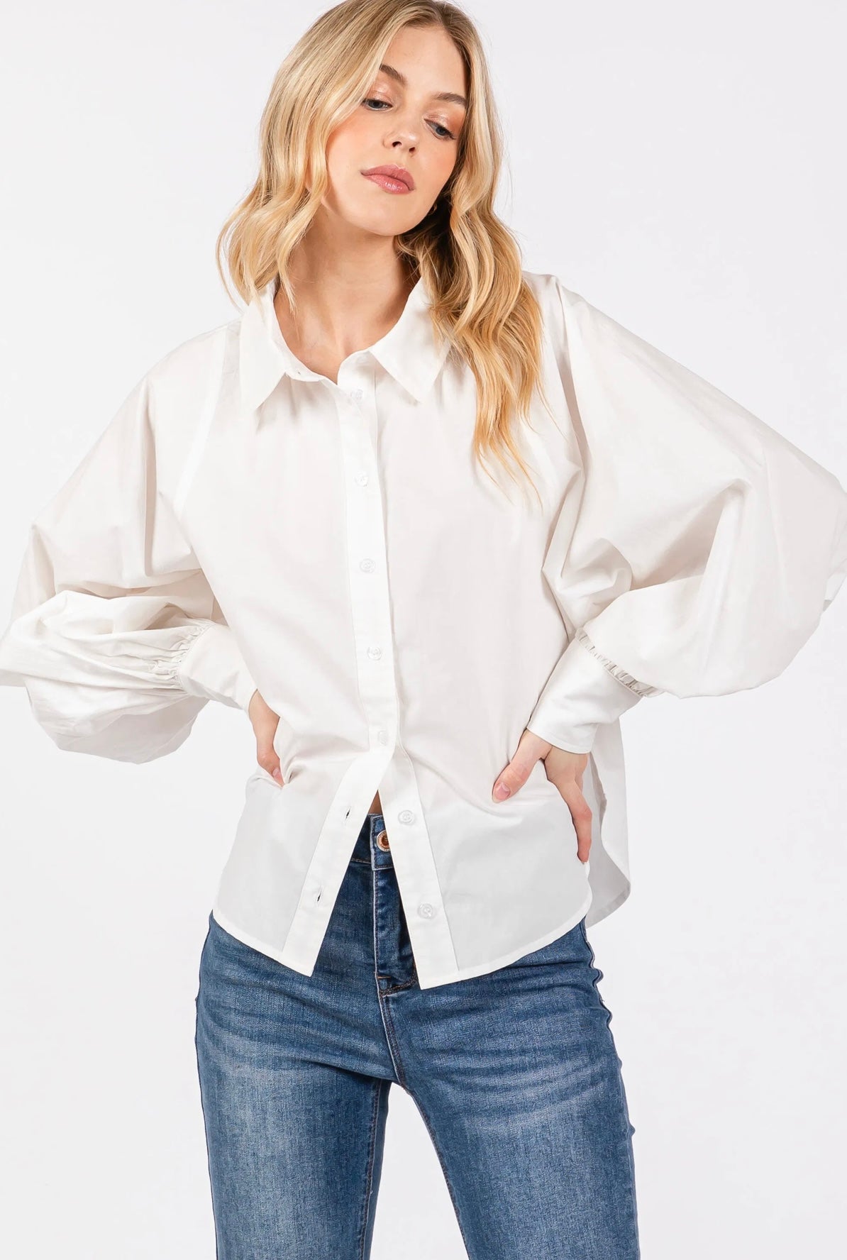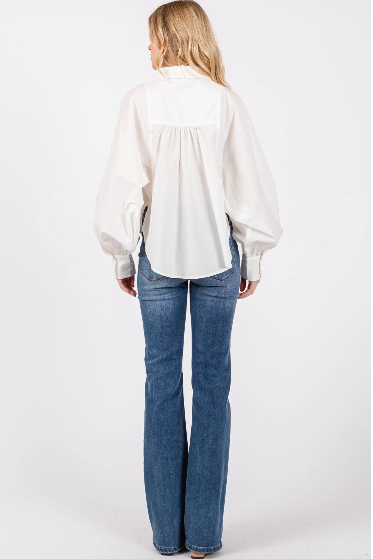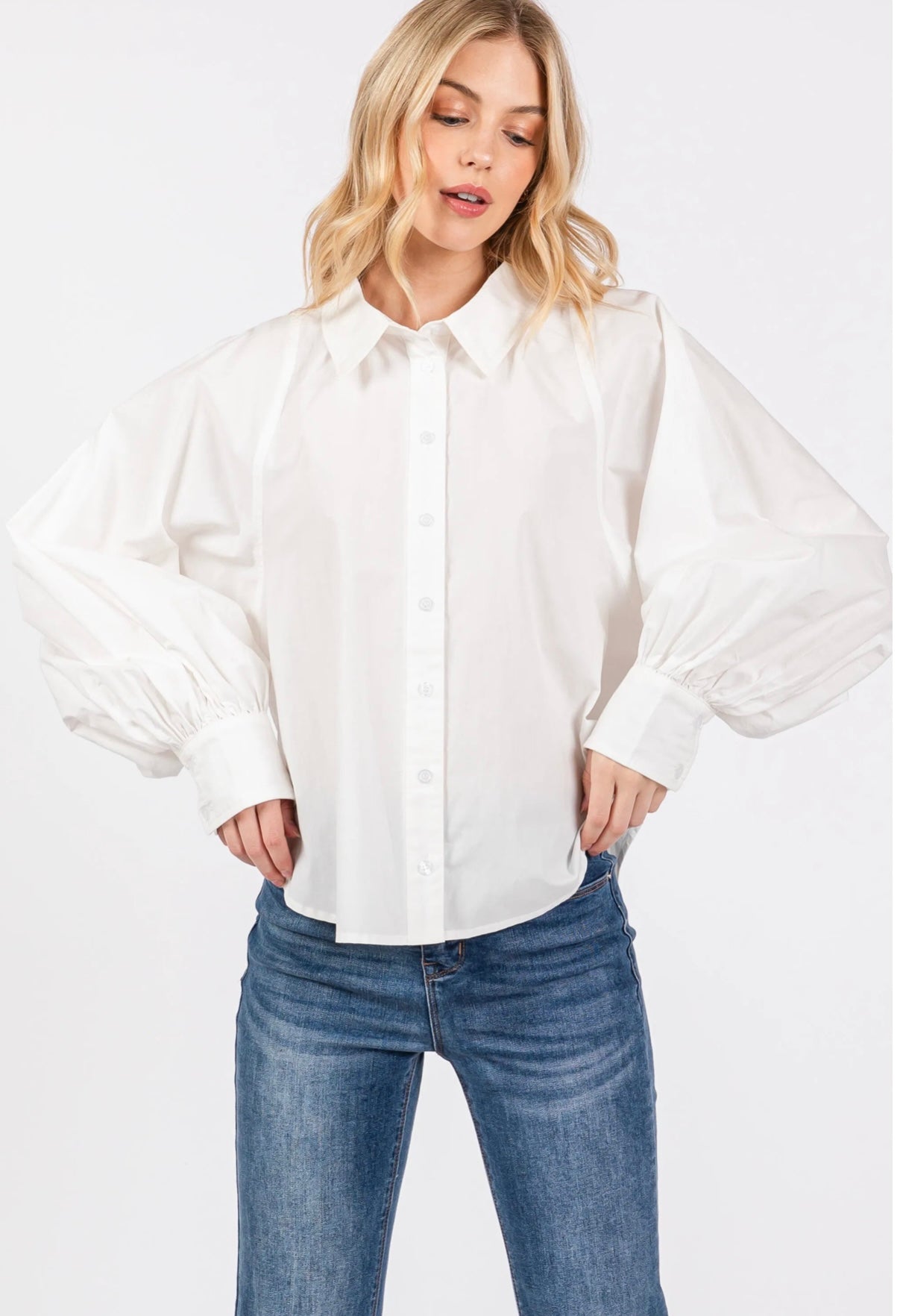 Effortlessly elegant — the Meredith Shirt redefines a timeless classic. Featuring voluminous sleeves, a crisp button-down silhouette, and modern tailoring that flatters every figure.