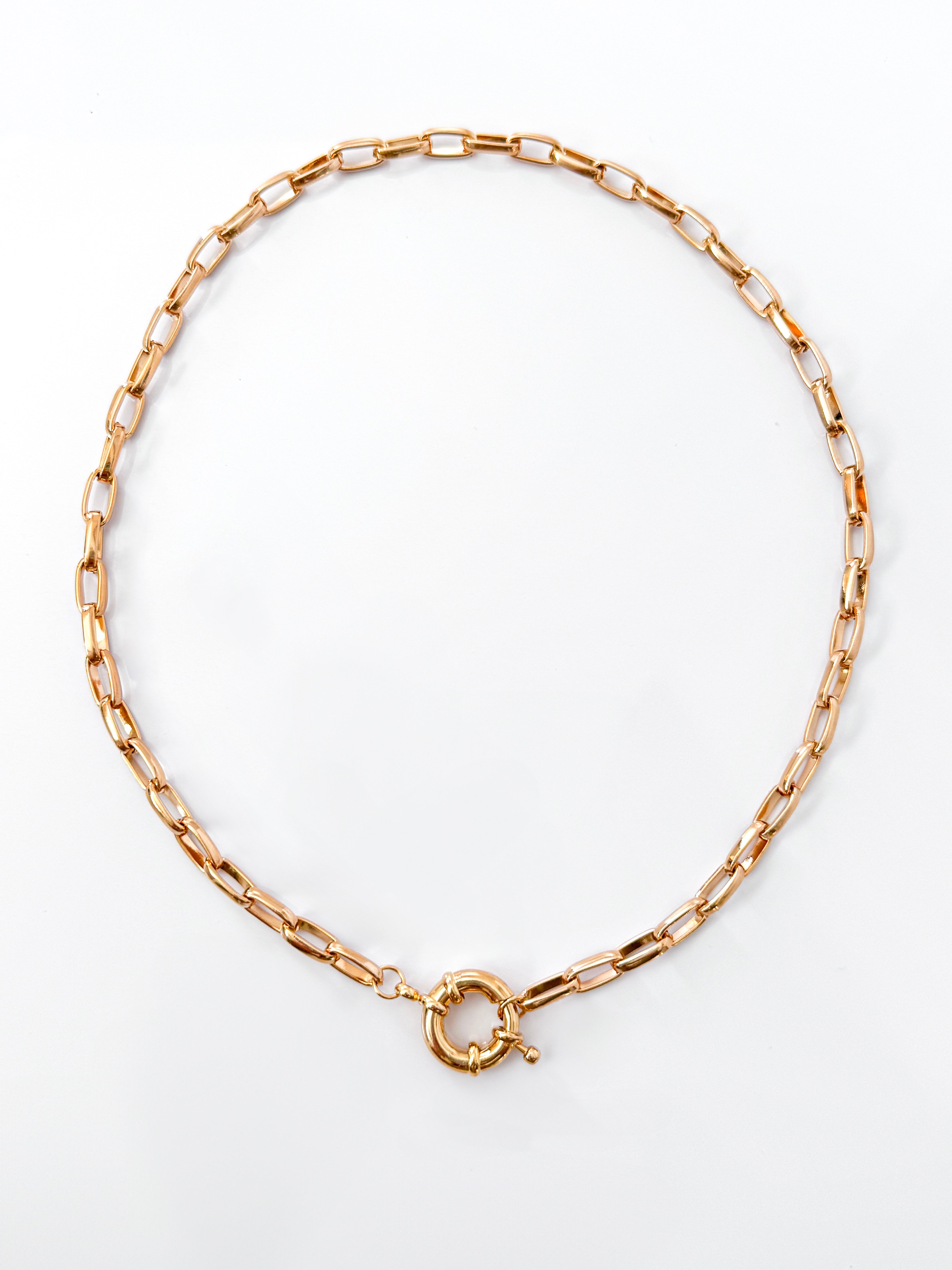 The Ciel Necklace features a refined paperclip chain with a sleek toggle clasp that makes it effortless to style. It strikes the perfect balance between minimal and bold — ideal for layering with delicate chains or making a clean solo statement.