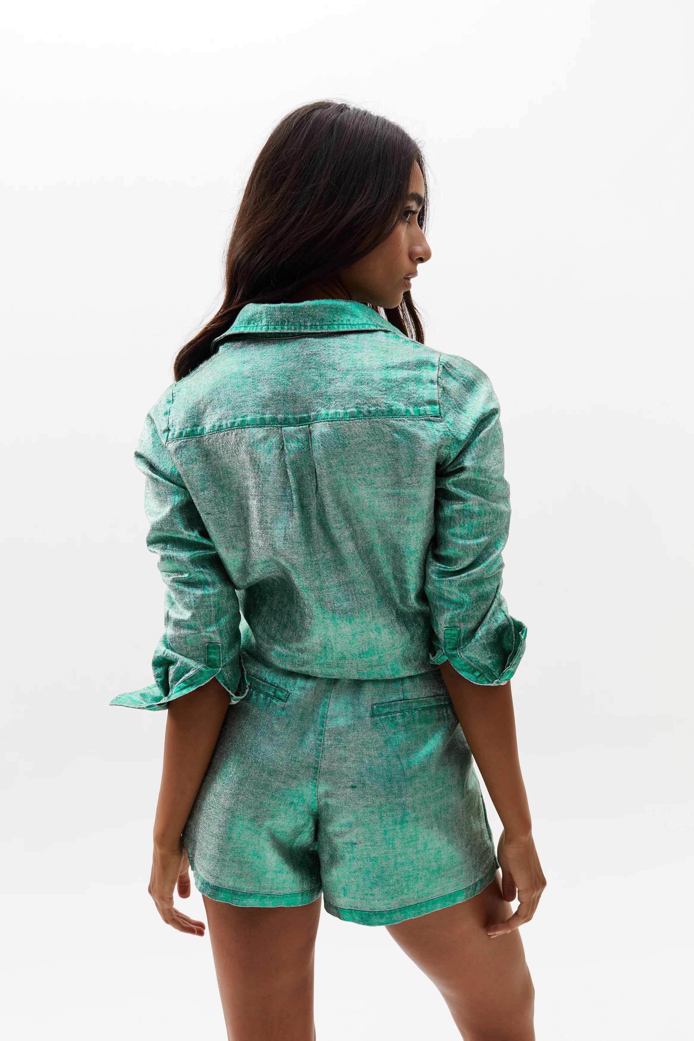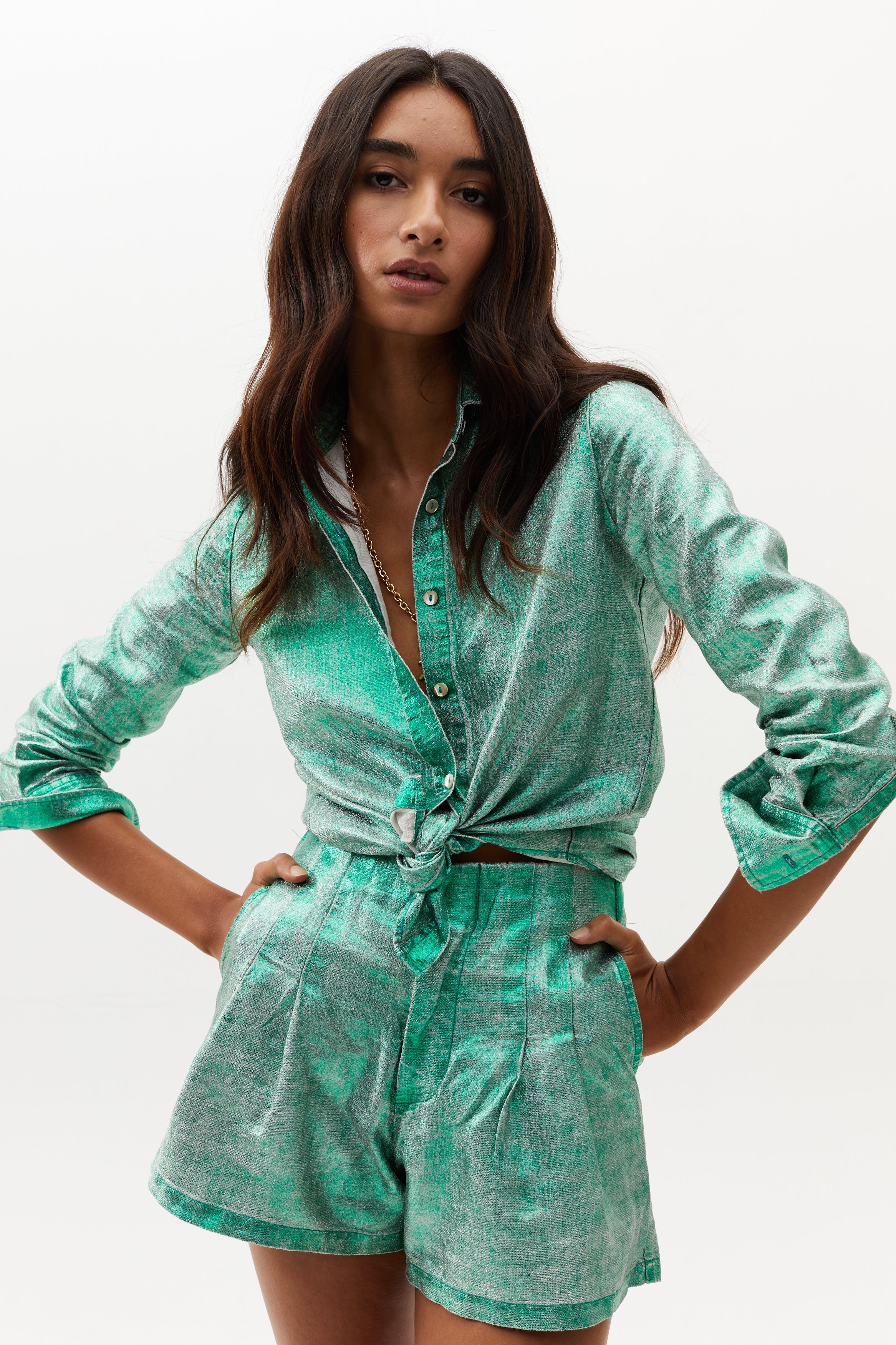 Our metallic San Marino linen shirt is the perfect elevated statement piece to have on your wardrobe.