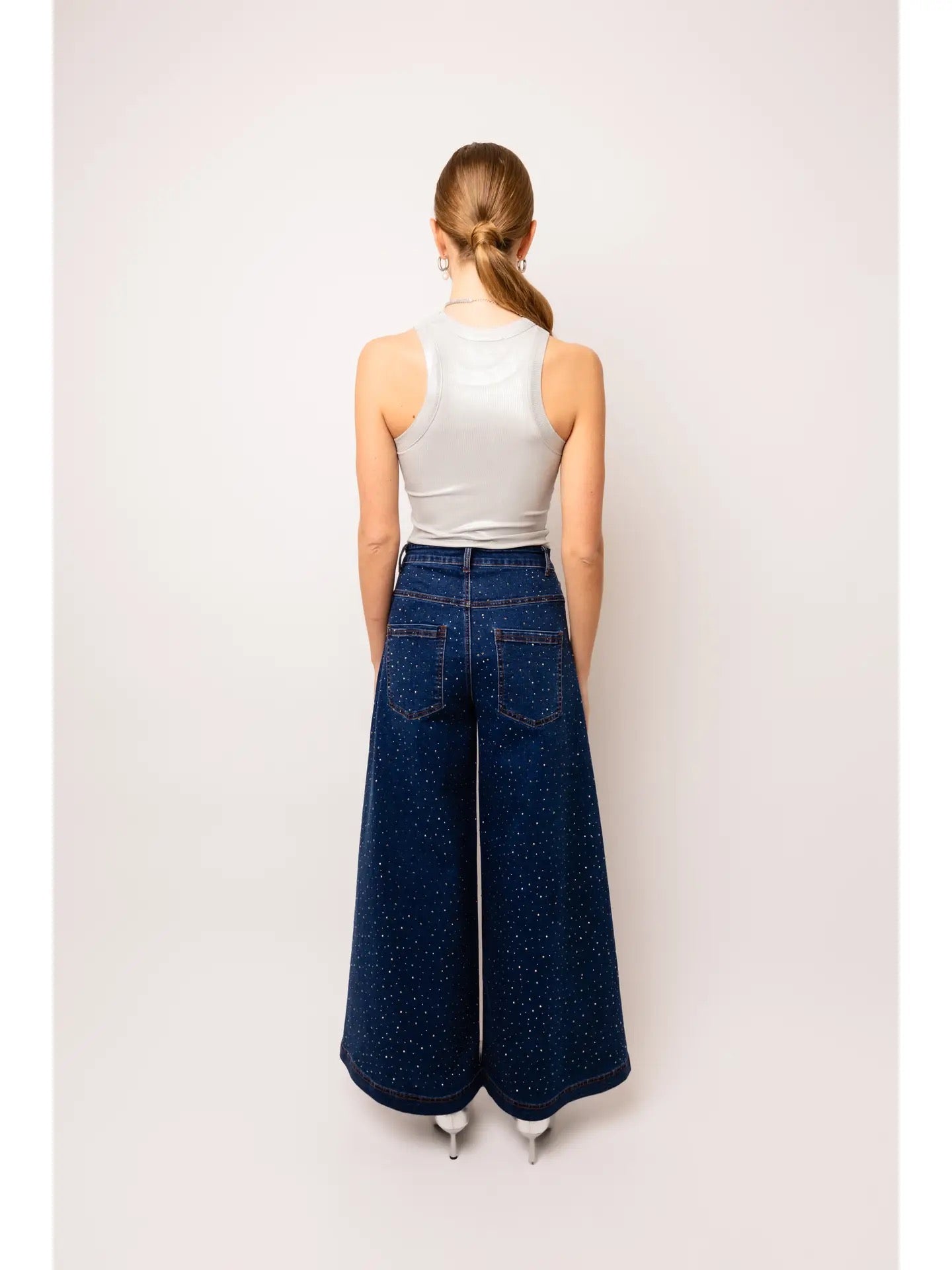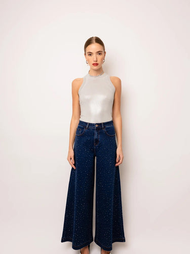 Shine in denim. The Prada Wide-Leg Crystal Jeans bring sparkle to everyday style with a high-rise fit, wide-leg silhouette, and crystal-studded details. Bold yet versatile, they’re perfect from day to night.