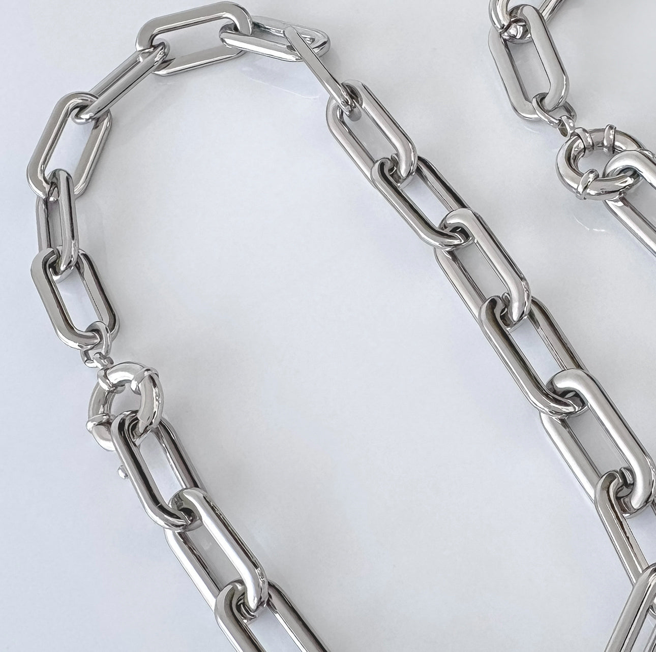 A sleek enamel-finished chunky chain in a bold silhouette. The Mikka Necklace is gold plated with a modern edge, perfect for statement layering.