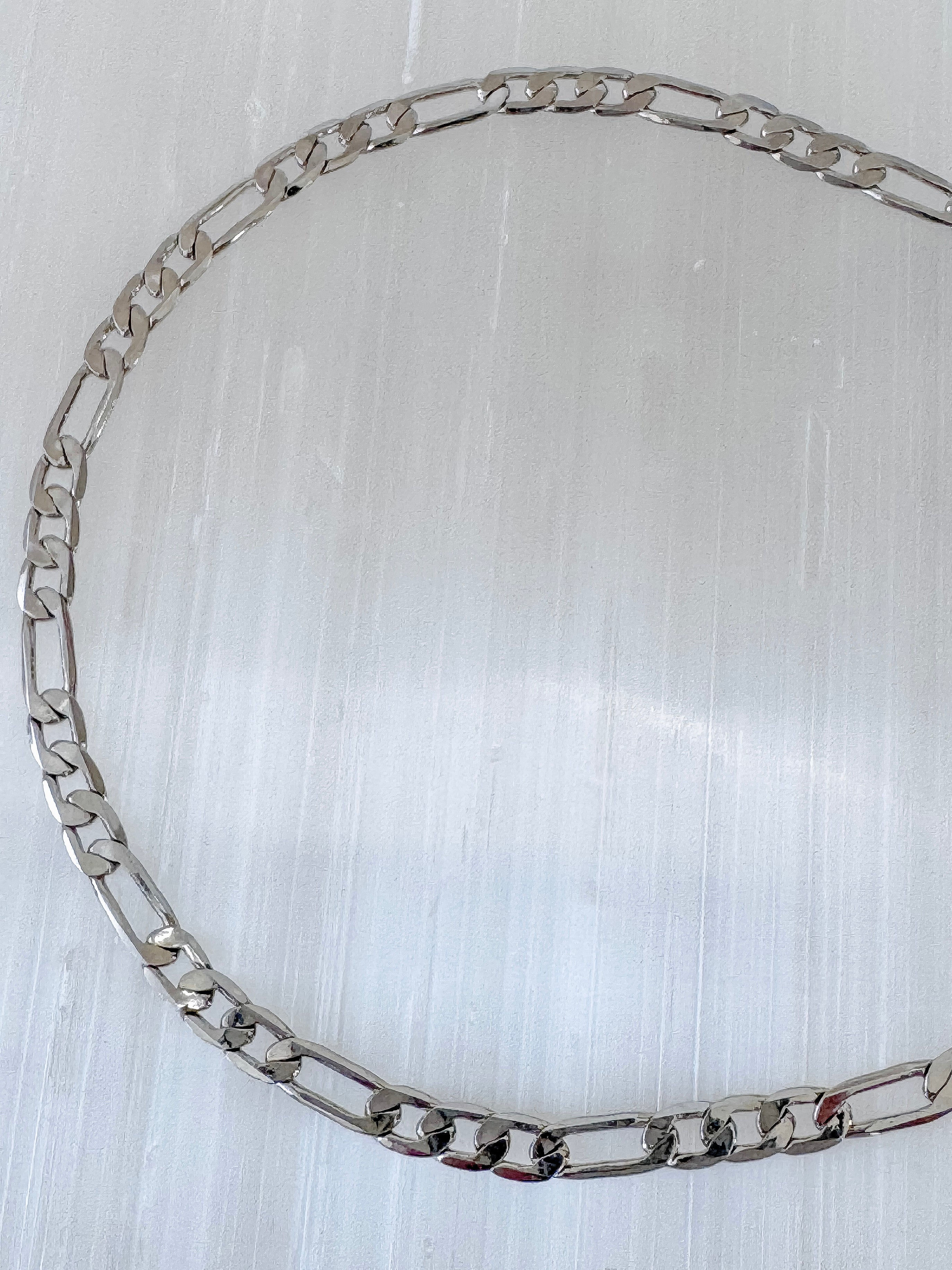 The Quorra Necklace brings bold energy with its classic silver Figaro chain design. A versatile statement piece that layers effortlessly or stands strong on its own—modern, sleek, and timeless.