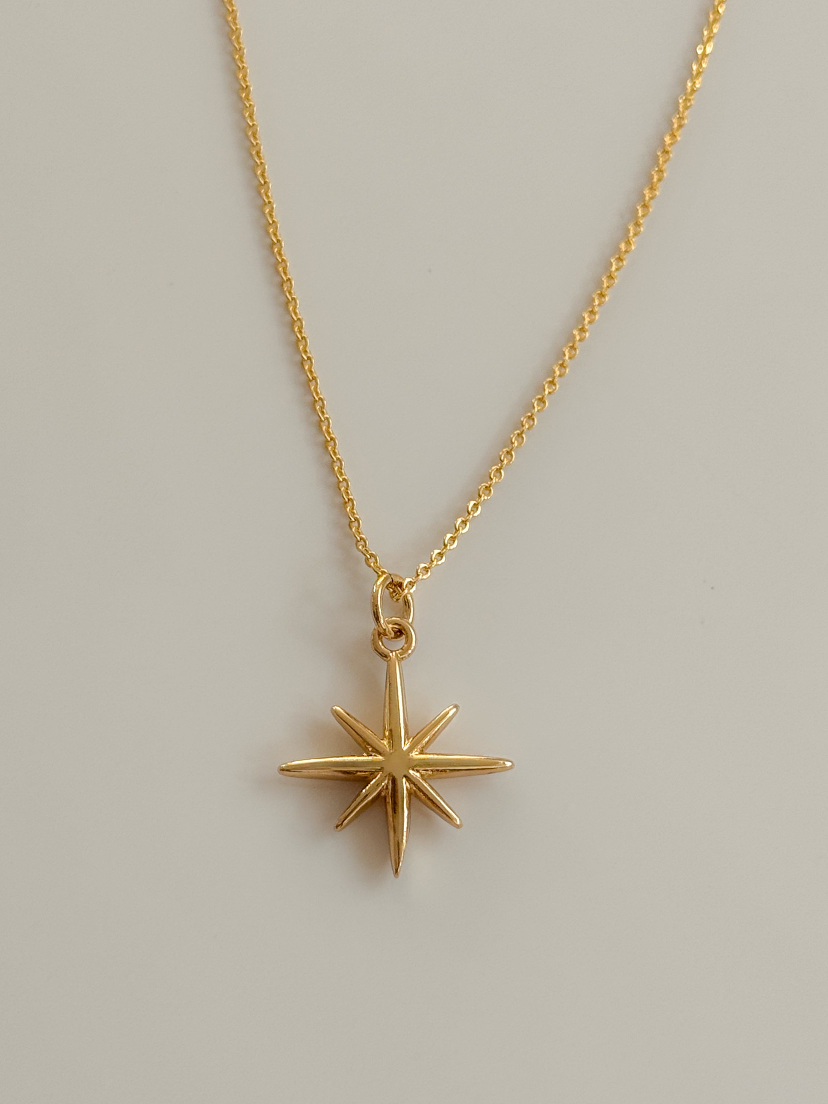 Shine with celestial elegance. The Nova Necklace features a gold-plated eight-point star pendant on a delicate chain — a timeless piece that adds instant glow whether layered or worn solo.
