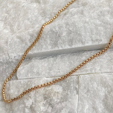 The Wynnie Necklace is a sleek chain with timeless appeal. Its clean, structured design makes it perfect for layering or wearing solo for a polished everyday look.