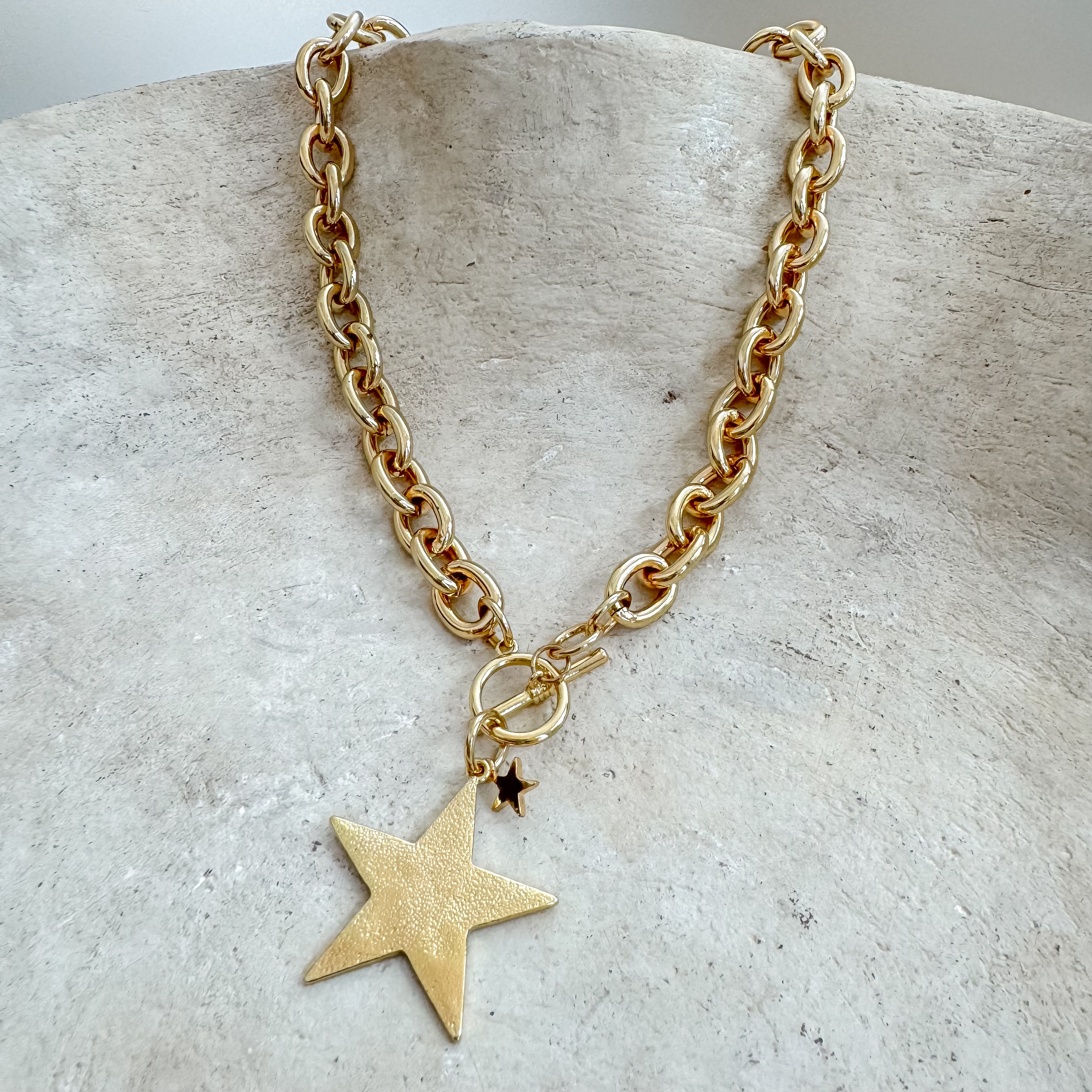 Add some celestial charm to your outfit with our Twinkle Necklace! This star chunky necklace is sure to make you shine like the stars. Perfect for any occasion, it's a must-have for all jewelry lovers!