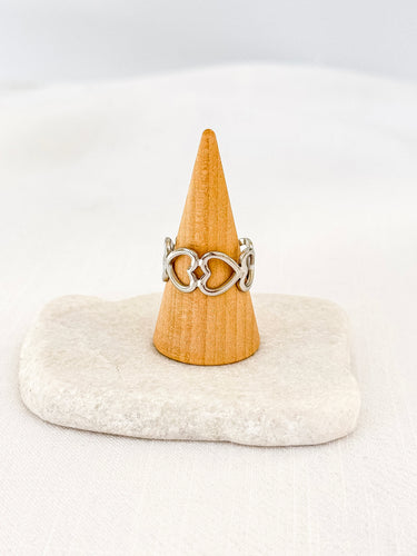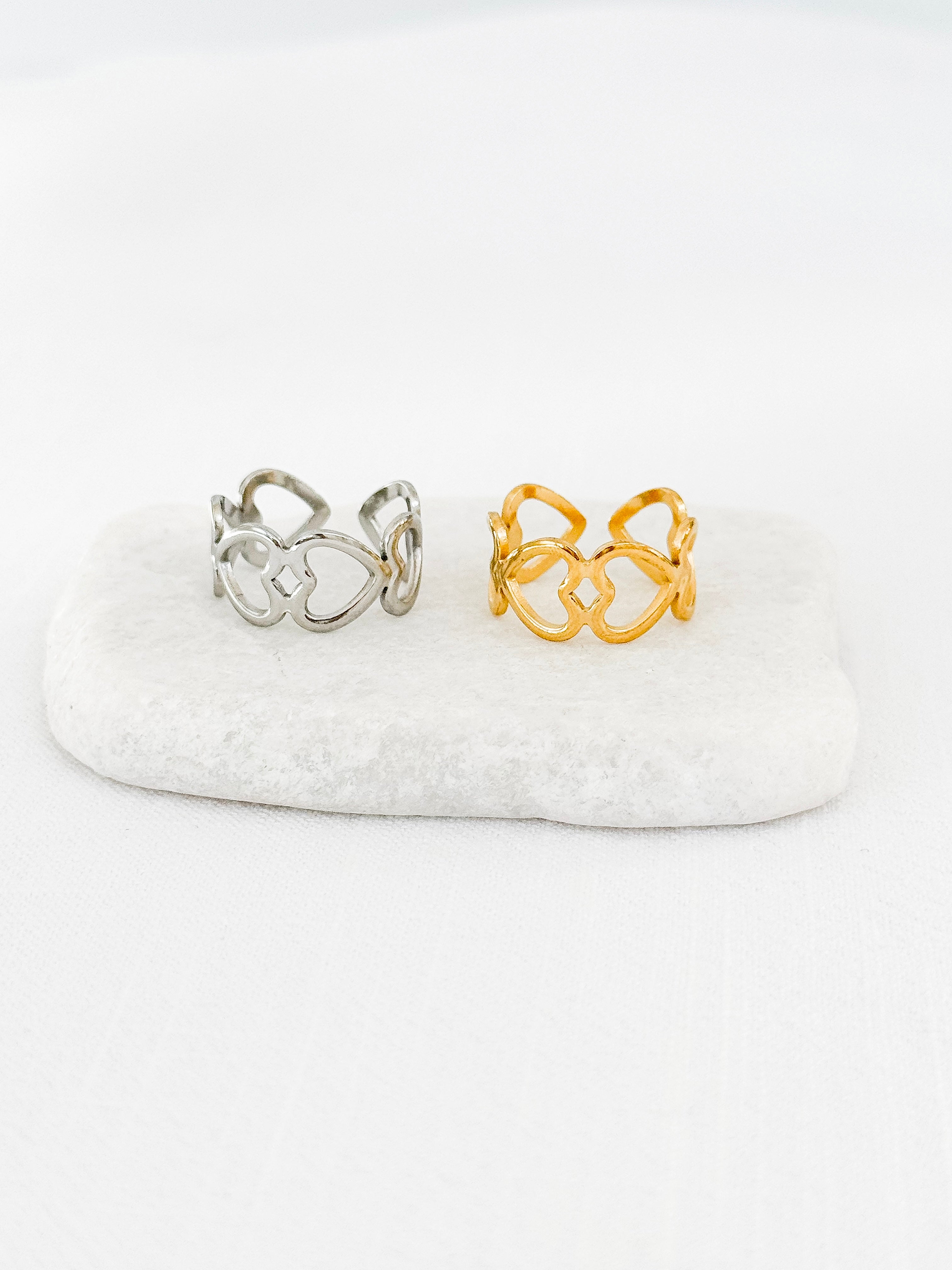 Celebrate timeless elegance with the Italia Ring — a delicate chain of interlocking hearts crafted in gold or silver plating. Romantic, modern, and effortlessly chic for every occasion.