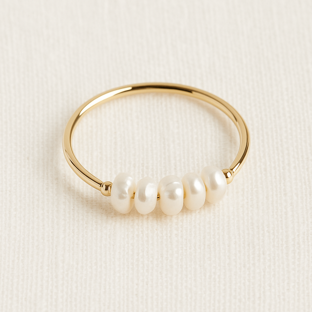 Mathieu Ring features a delicate row of pearls set on a smooth polished band.