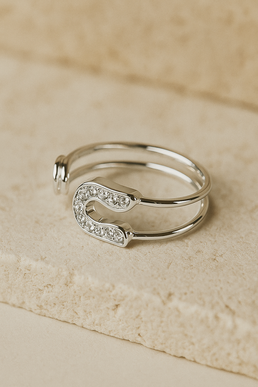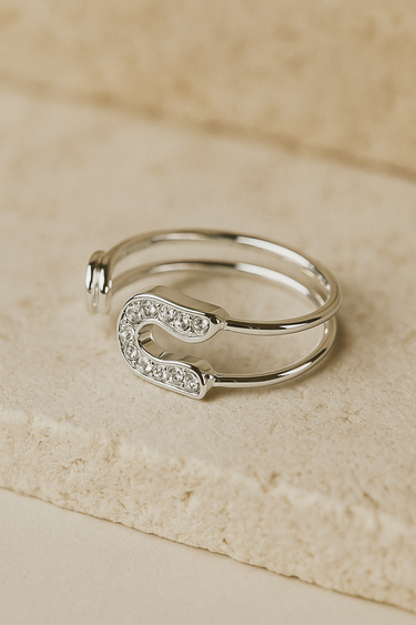 Minimal sparkle, maximum charm. This double-band silver ring features a sleek paperclip design adorned with delicate crystals that catch the light from every angle.