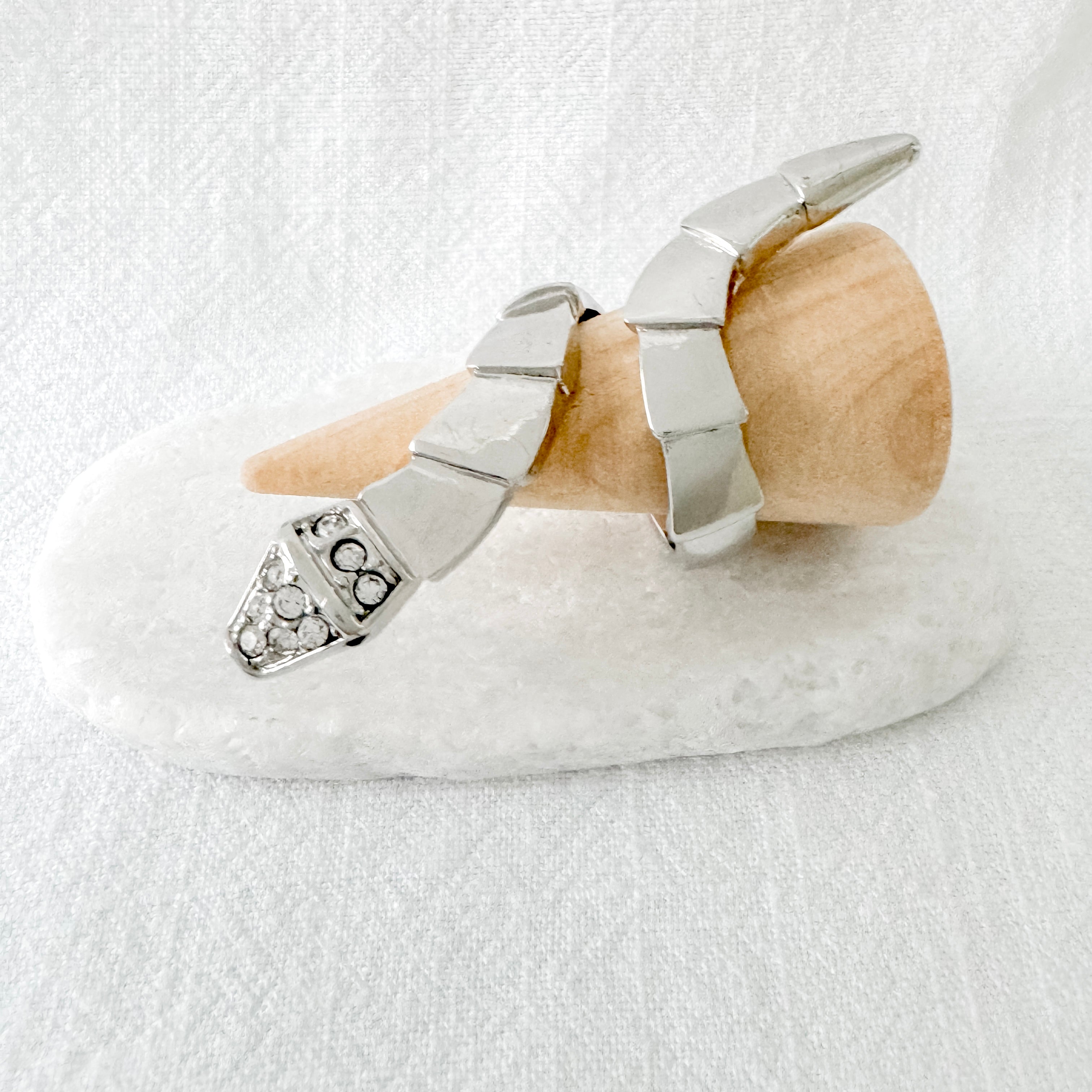 Add a touch of wildness to your accessories with the Selva Ring, featuring a sleek snake design. Embrace your inner rebel and make a statement with this unique piece.