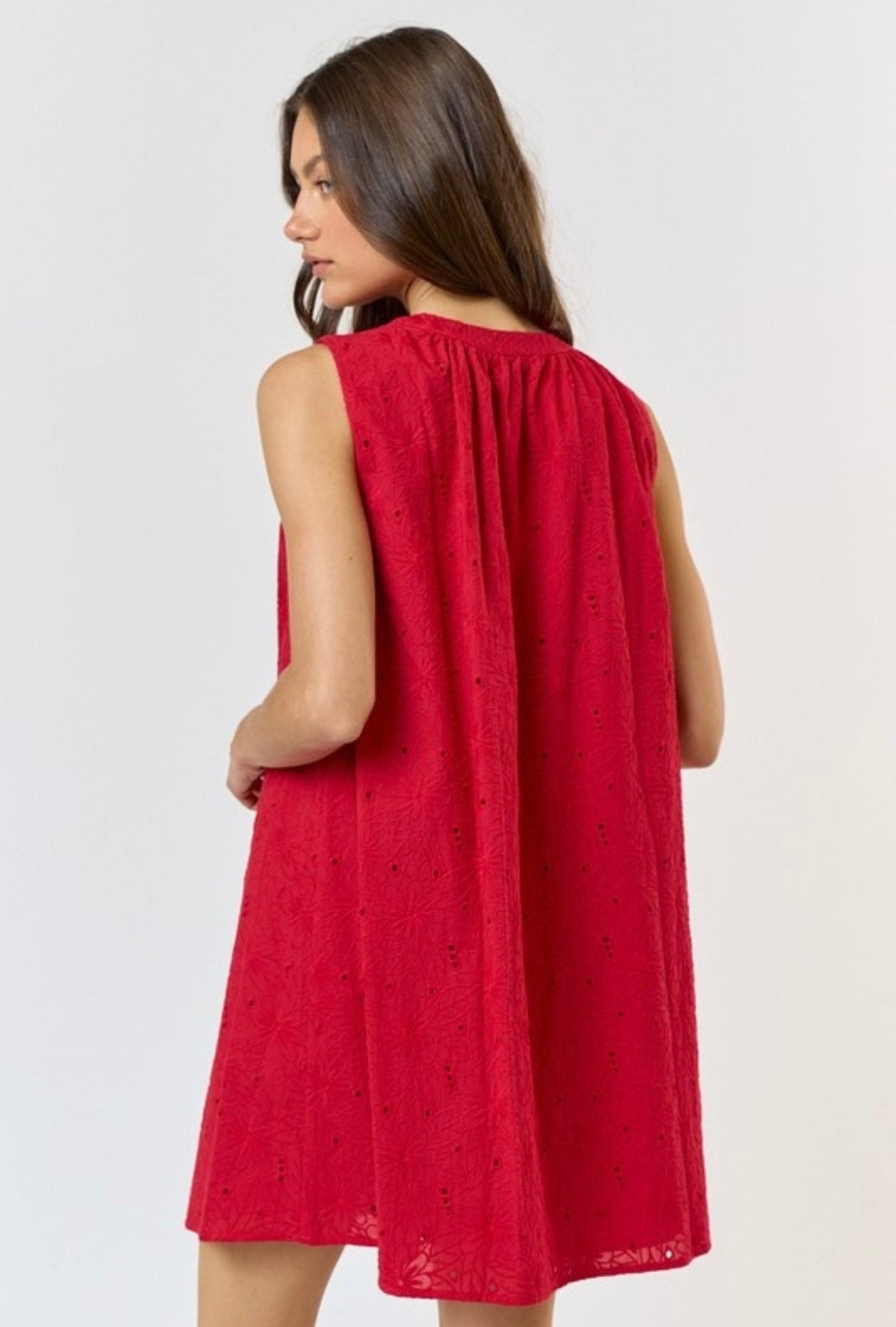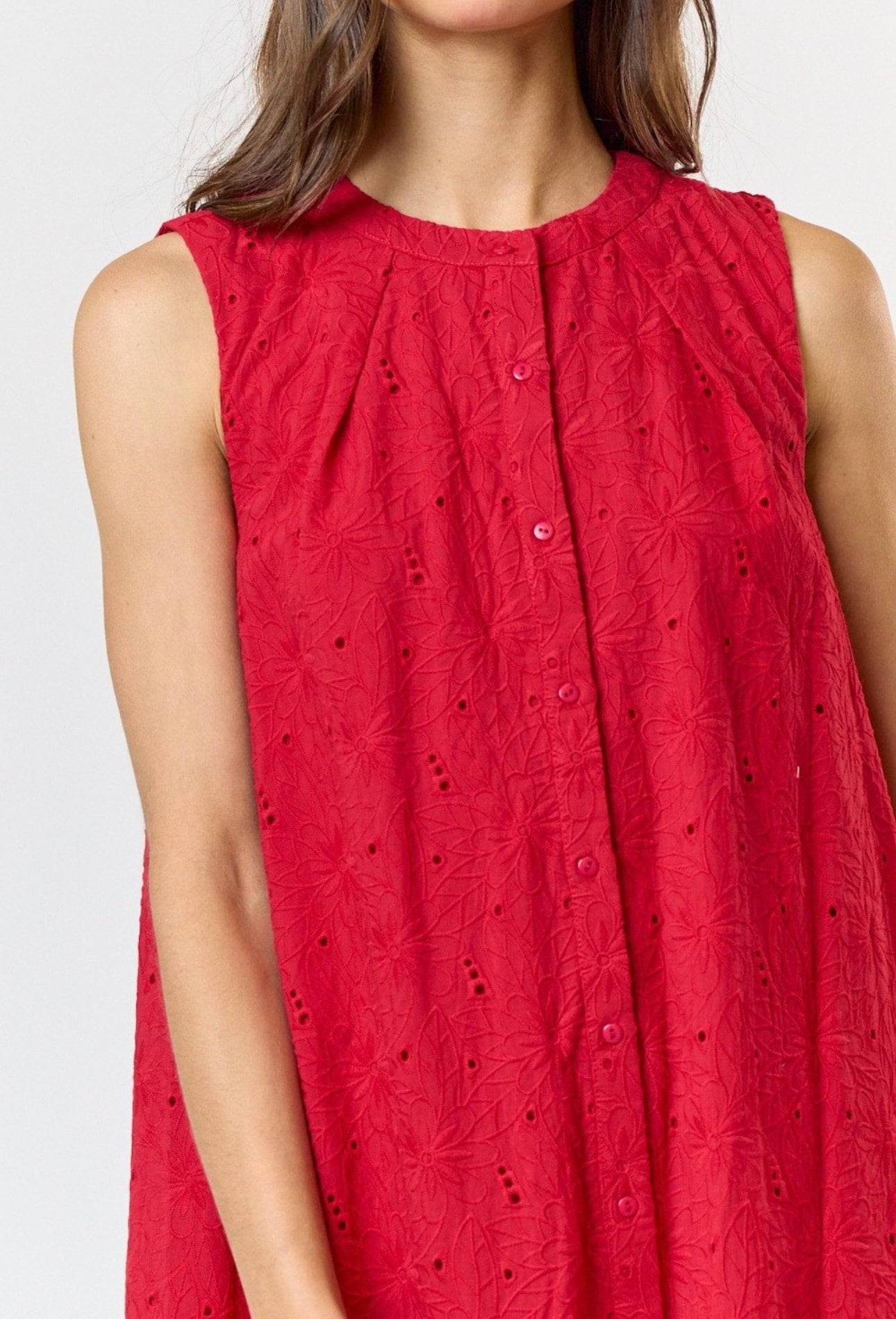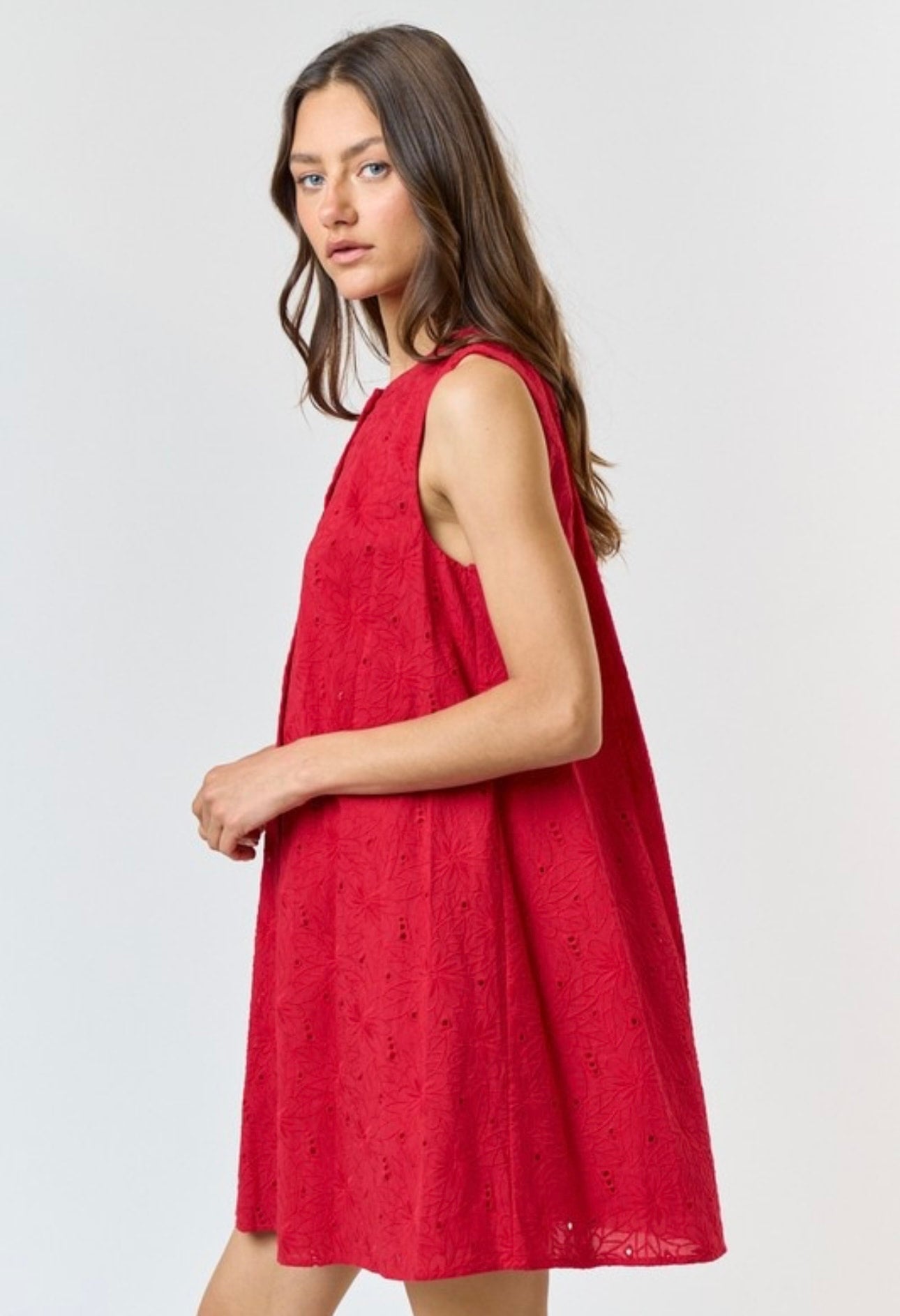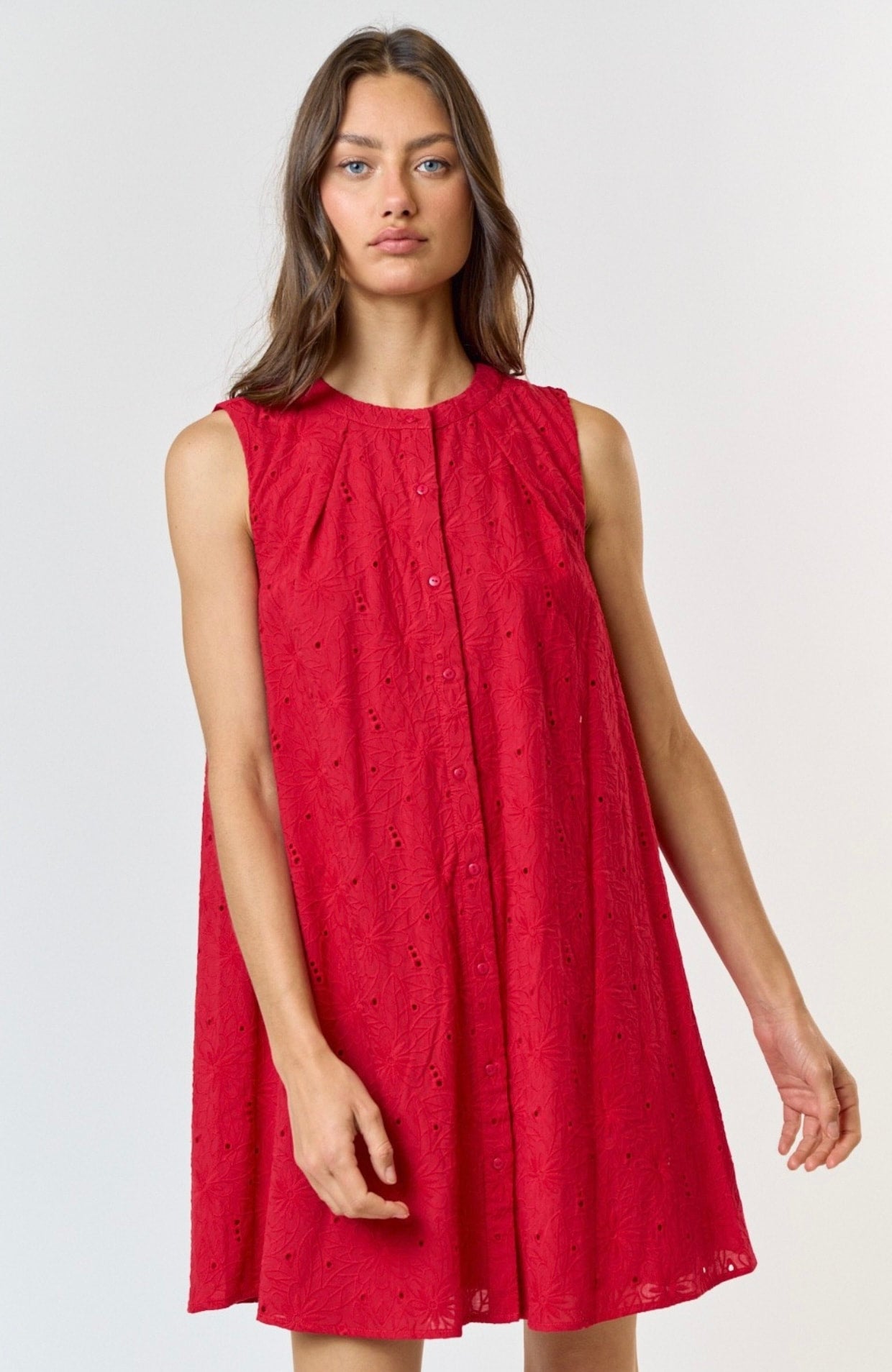 Bright and effortless — the Gigi Dress features an airy silhouette, floral eyelet fabric, and a sleeveless cut. Lightweight, timeless, and full of charm.