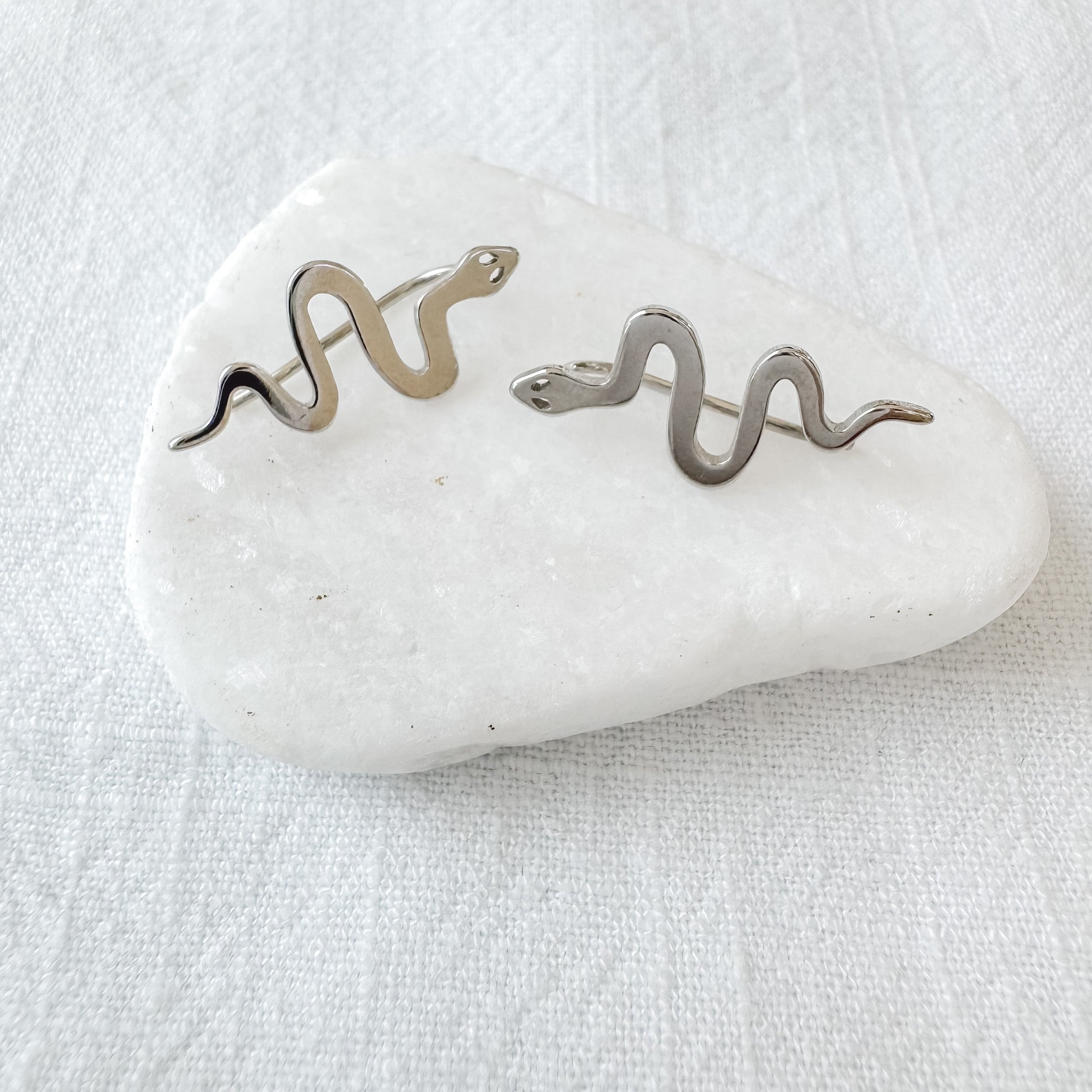 Dare to curve: the Blulish Stud Earrings are slim, snake-shaped studs plated in gold or silver. Very elongated—makes for a dramatic effect, they’re nickel-free and hypoallergenic. Perfect for adding edge to any outfit.