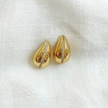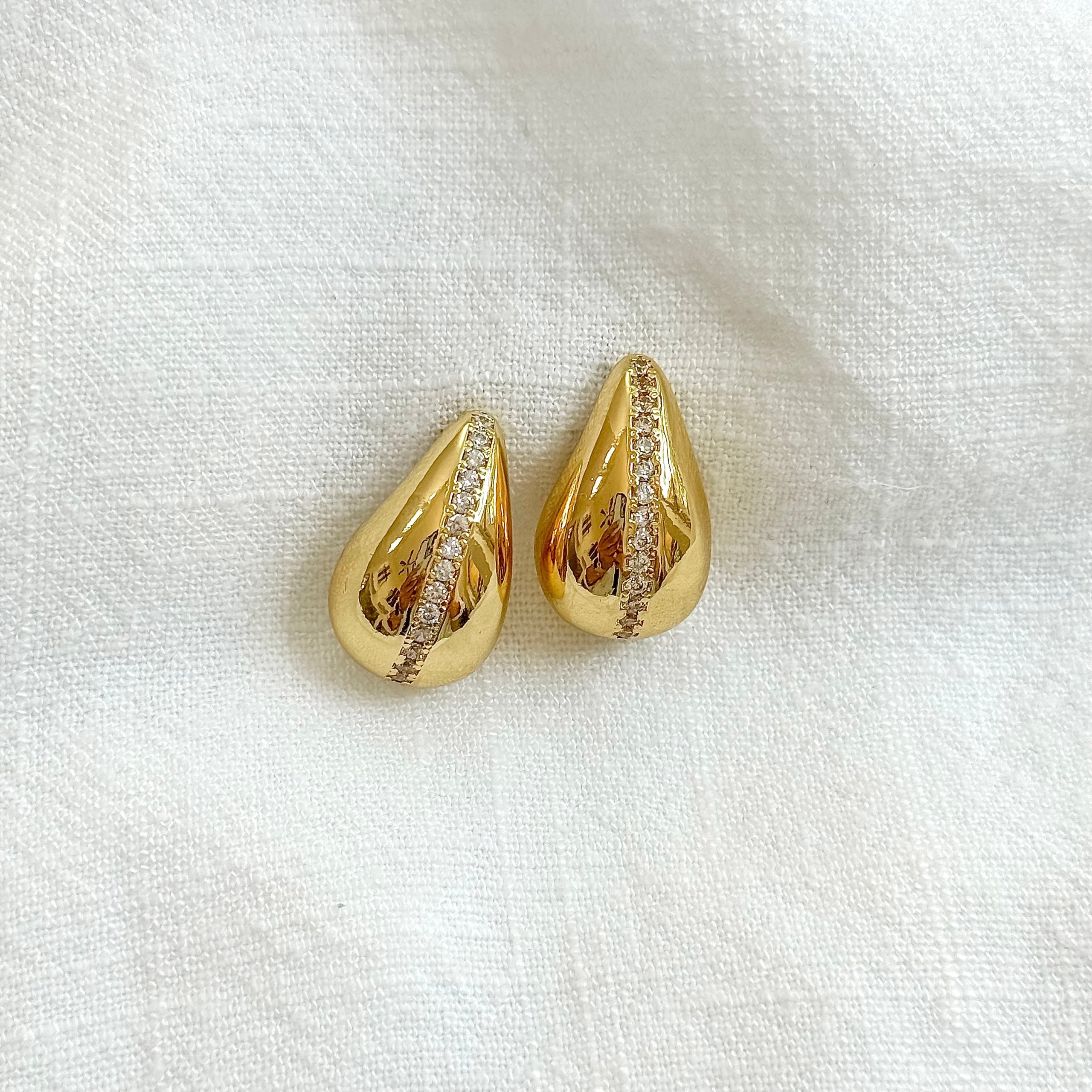 Sleek teardrop Etik stud earrings with a sparkling crystal line — timeless, lightweight, and designed to elevate your everyday style.